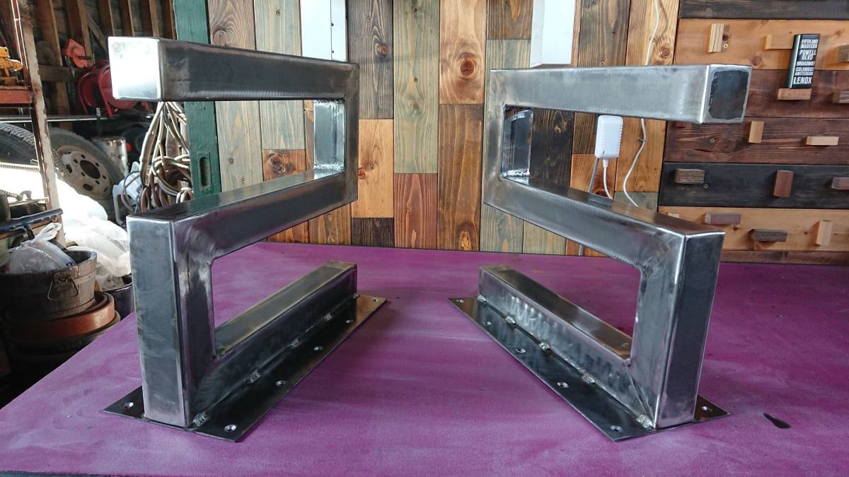 ハンドメイドの鉄脚2脚1組での出品です。50mmのフレームを使用しておりますので、とても重厚感があります。またデザインもオシャレでかっこいいと思います。