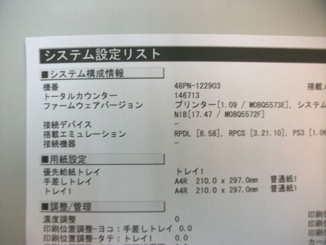 カセットトレイ、手差し印刷動作確認済み。 連続印刷動作確認済み。 自動両面印刷動作確認済み。 USB、LAN動作確認済み。 |