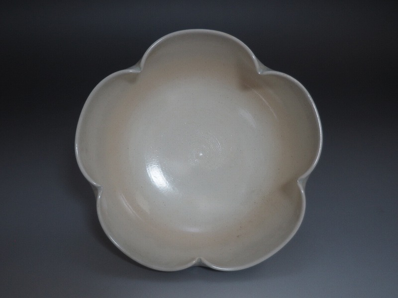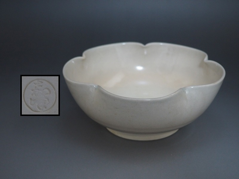 | A3040 伊藤嘉峰 作 梅形 菓子器 ☆ 茶道具 抹茶道具 茶器 抹茶器 茶懐石 茶事 鉢 菓子鉢 盛鉢 梅鉢 盛器 陶器 作家物 在銘 陶印 良品 無傷 | ||