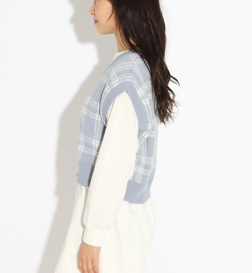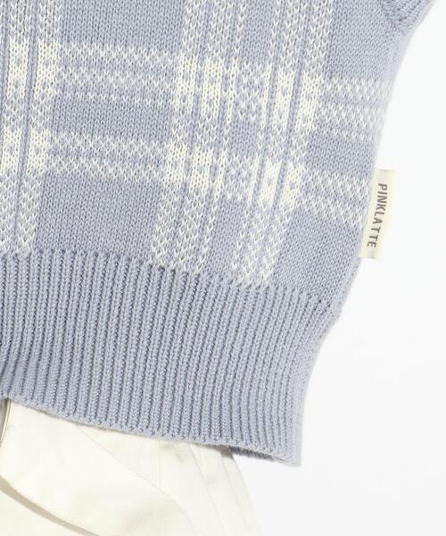ラスト 新品 PINK-latte【洗える】チェック柄ショートニットべスト ライトベージュ(251) 16(160cm) 定価2189円