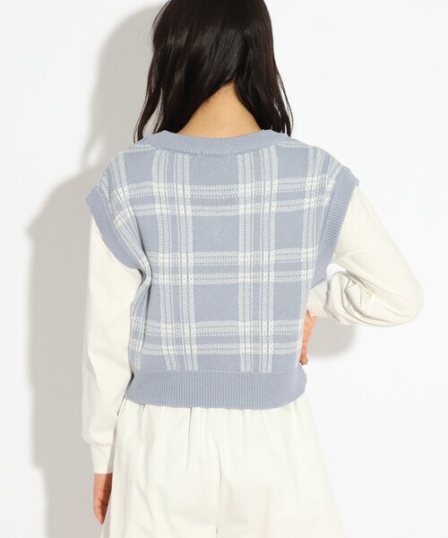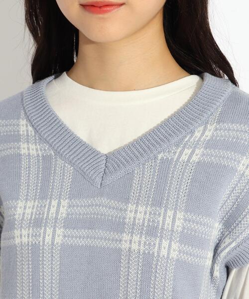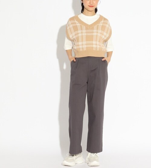 新品 PINK-latte【洗える】チェック柄ショートニットべスト ライトベージュ(251) 16(160cm) 定価2189円