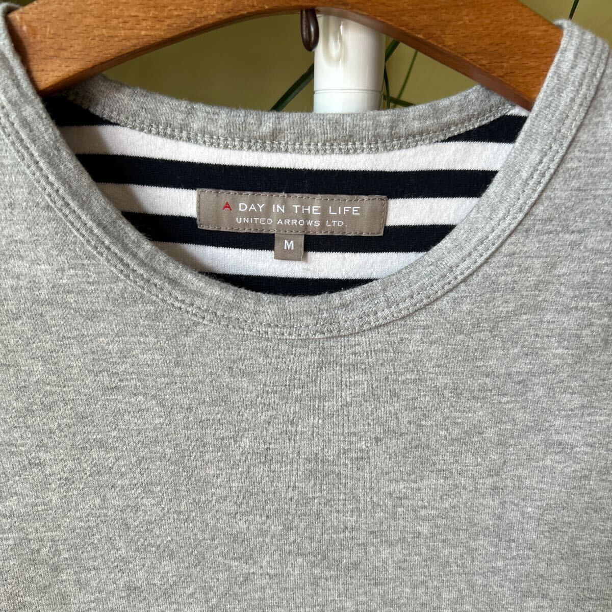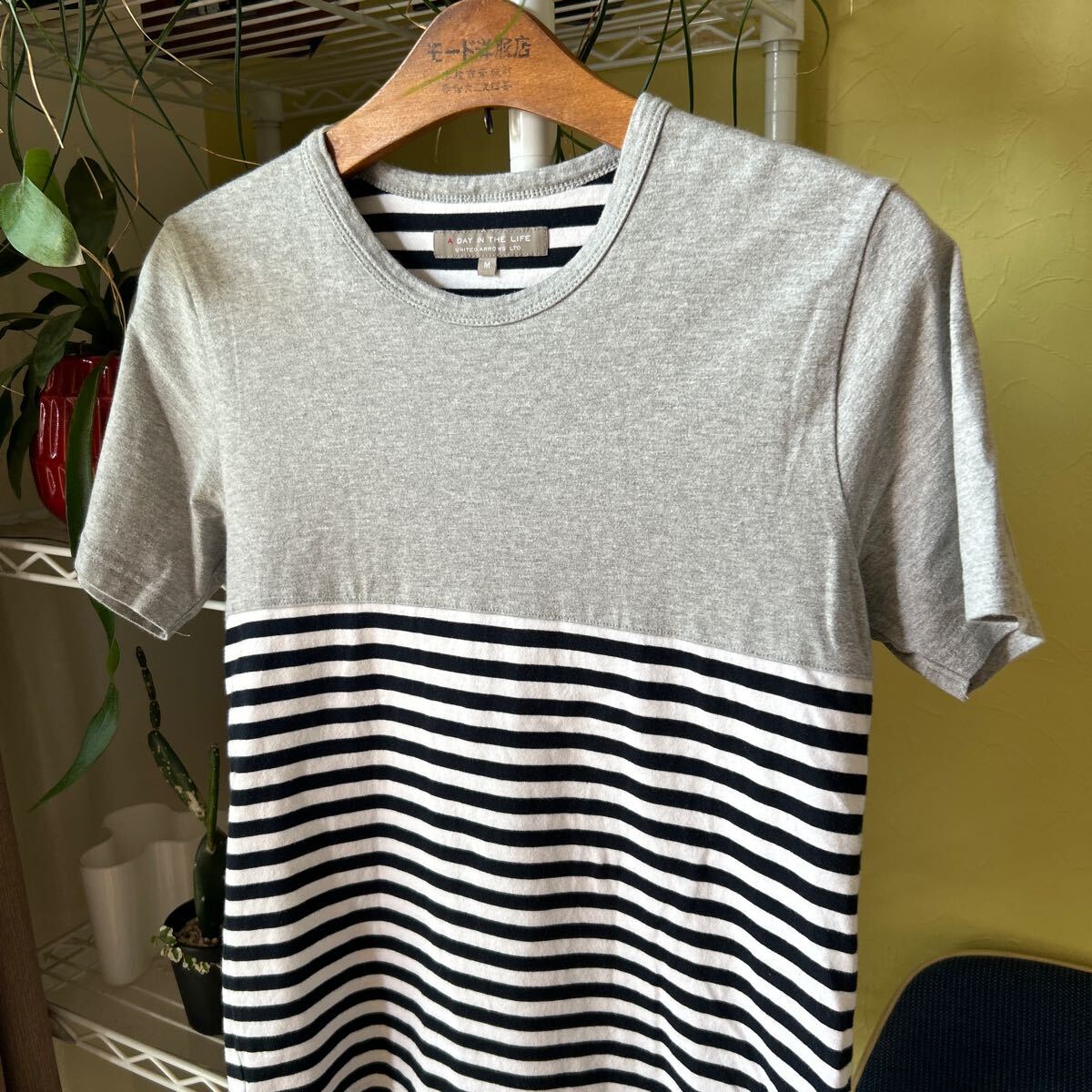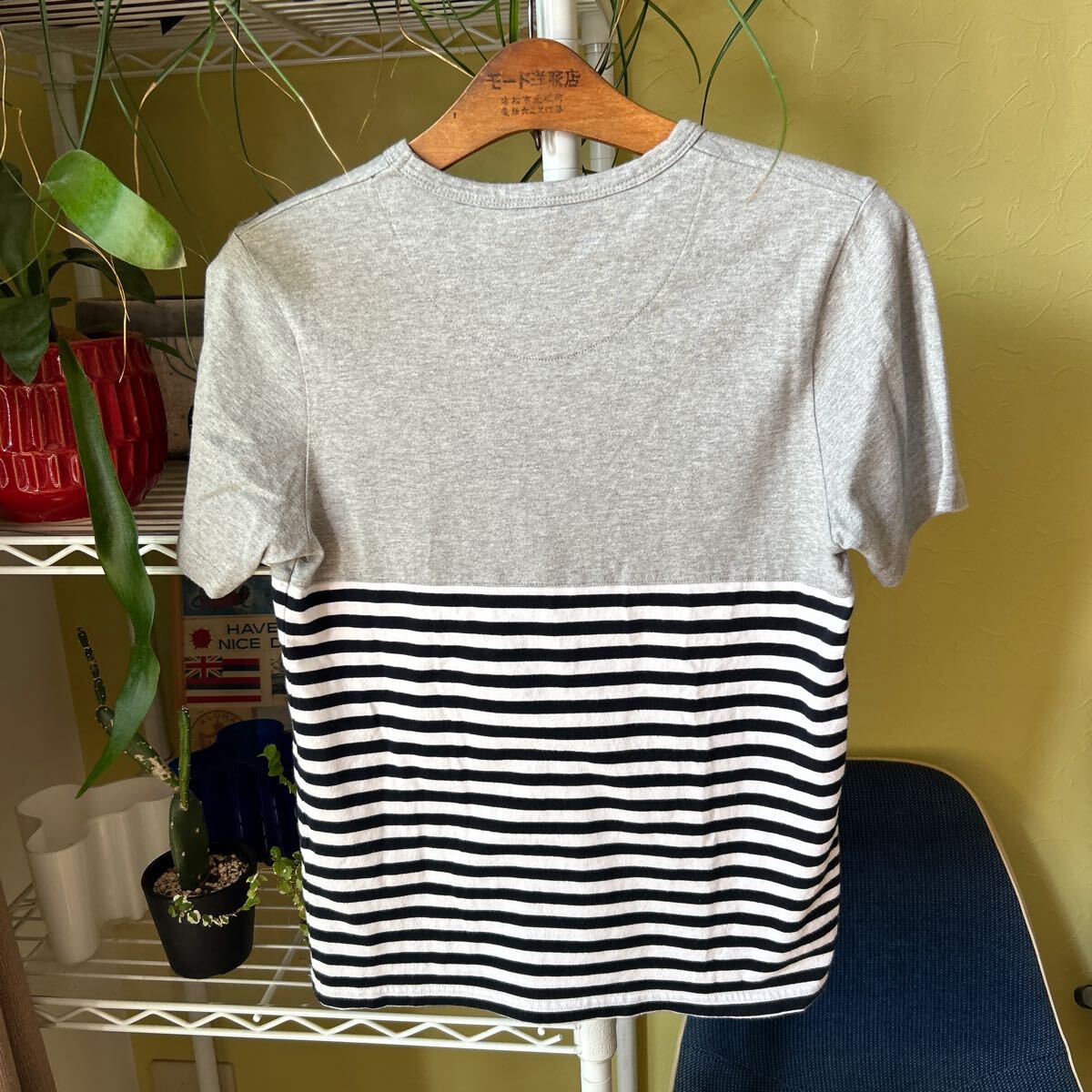 袖丈(脇下縫目〜袖先端)。多少の誤差はお許しください。良い雰囲気です。なめらかな綿100ニット ボーダー切り替えし できる限りダメージは説明させていただきますが、こちらが気づかない程度のわずかなしみ、よごれ、