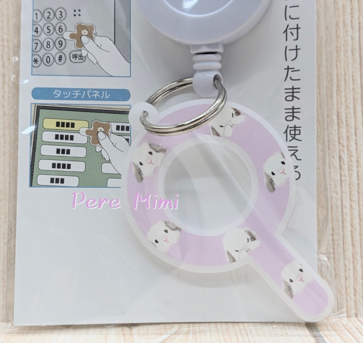 こちらはマンション入口、エレベーターやタッチパネルなど公共スペースのボタンを直接触れずにタッチできる[タッチレスマスコット]リール付きで最大61cmまで伸びるのでカバンに付けたまま使えます。