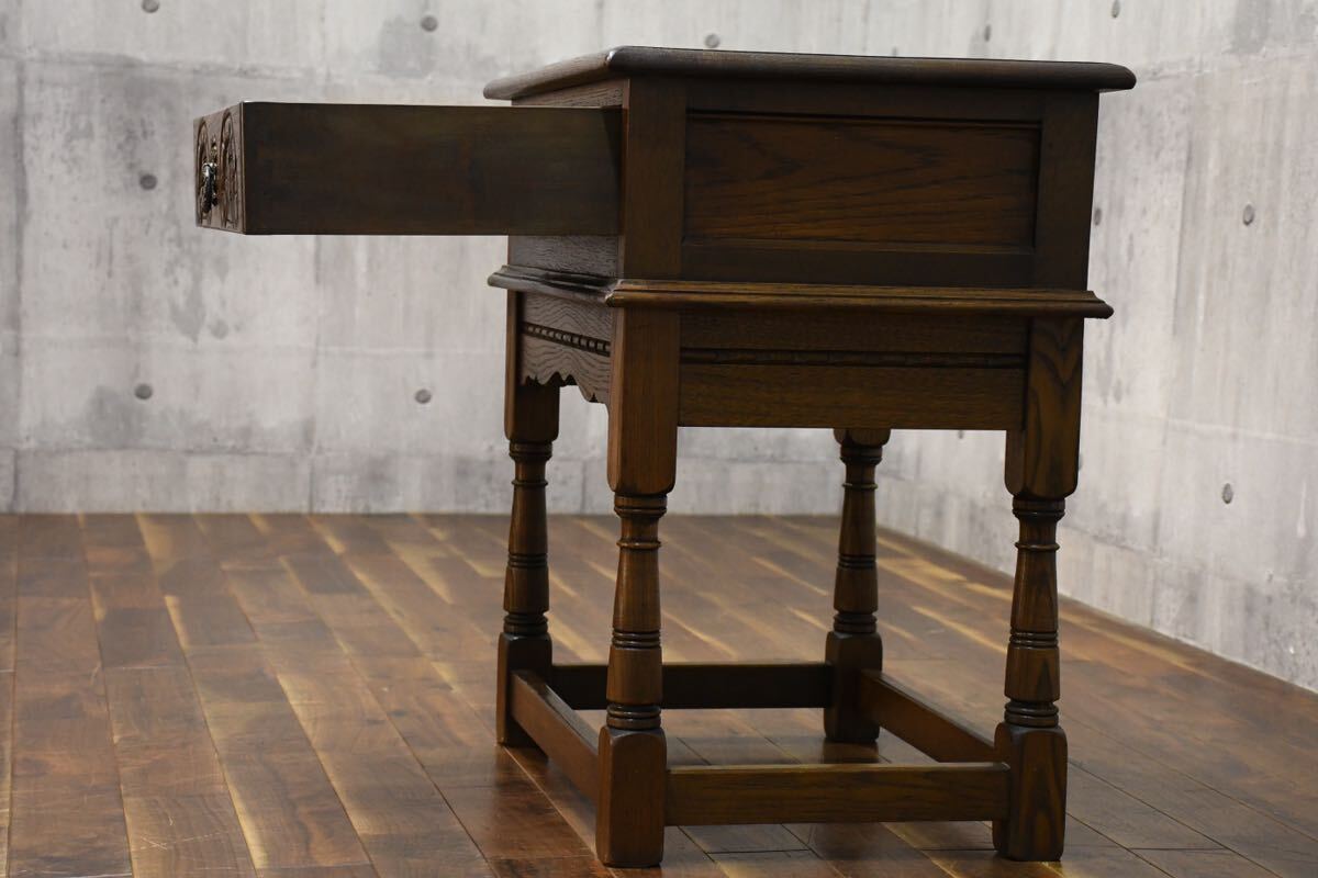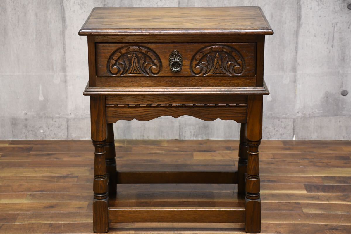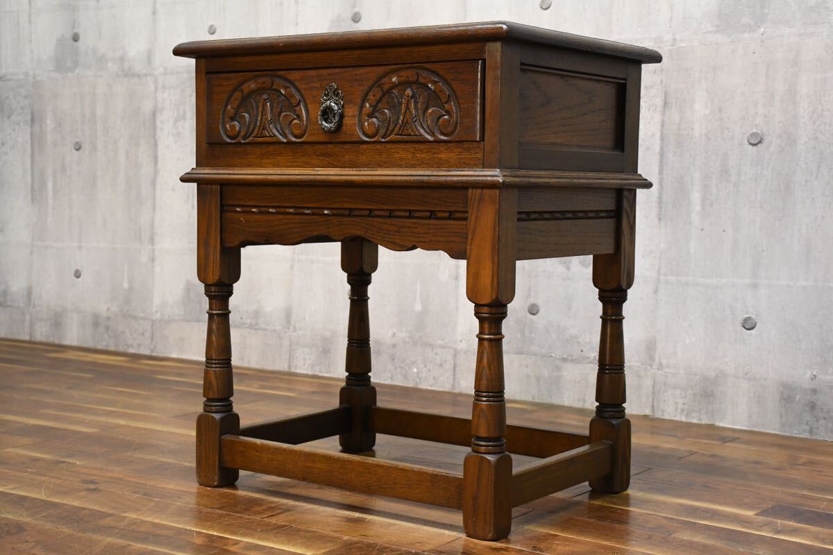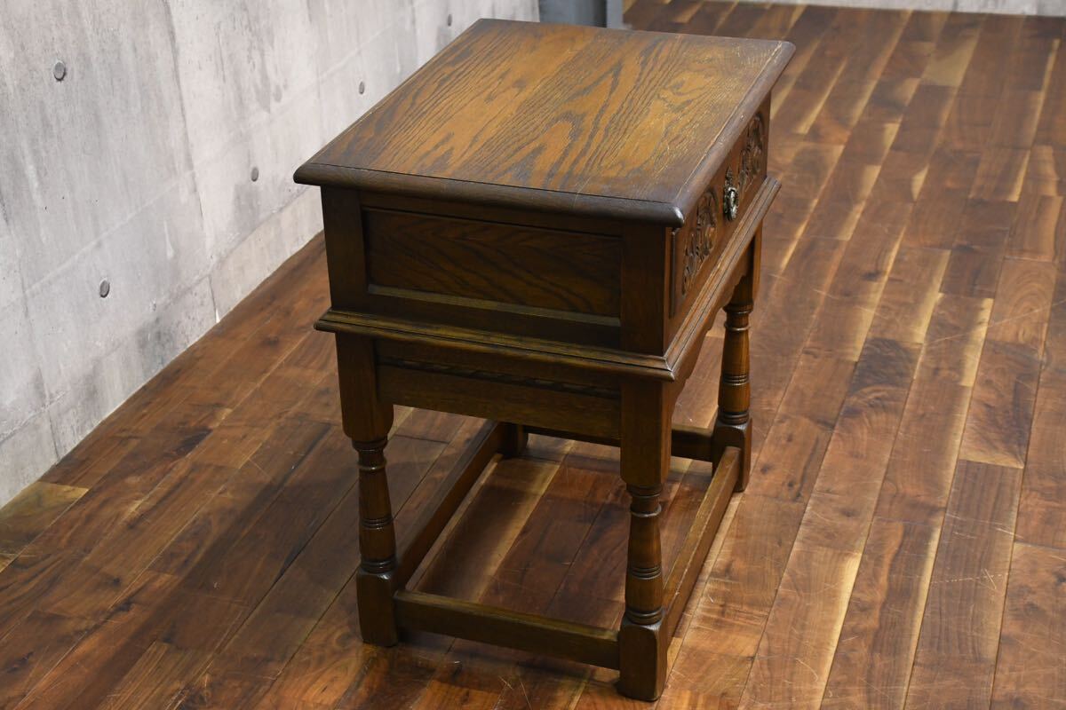 英国 Old Charm オールドチャーム ランプテーブル 引き出し付きサイドテーブルの出品です。