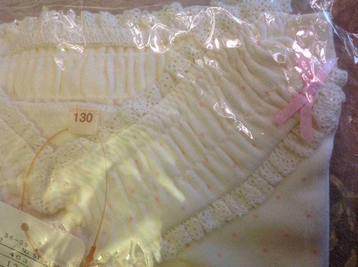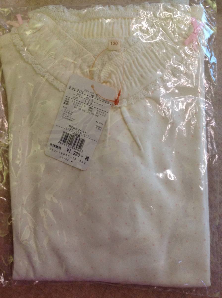 新品  HusHusHベア天竺シャーリングハイネックカットソー オフホワイト × ピンクドット 13(130cm) 定価2189円