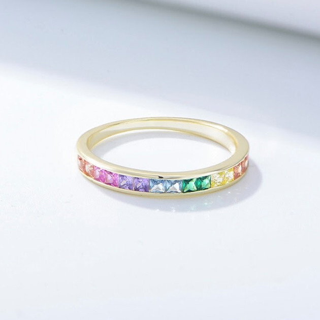 ●金属素材: シルバー925(刻印入)、14KGP。●ストーン:キュービックジルコニア、約2mm*2mm/個。●リング幅:約2.5mm 。●サイズ:14号強(直径約17.5)。●重さ:1.4g。