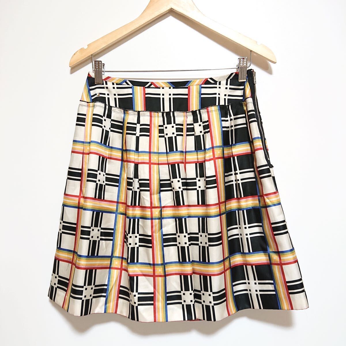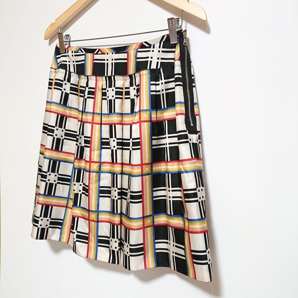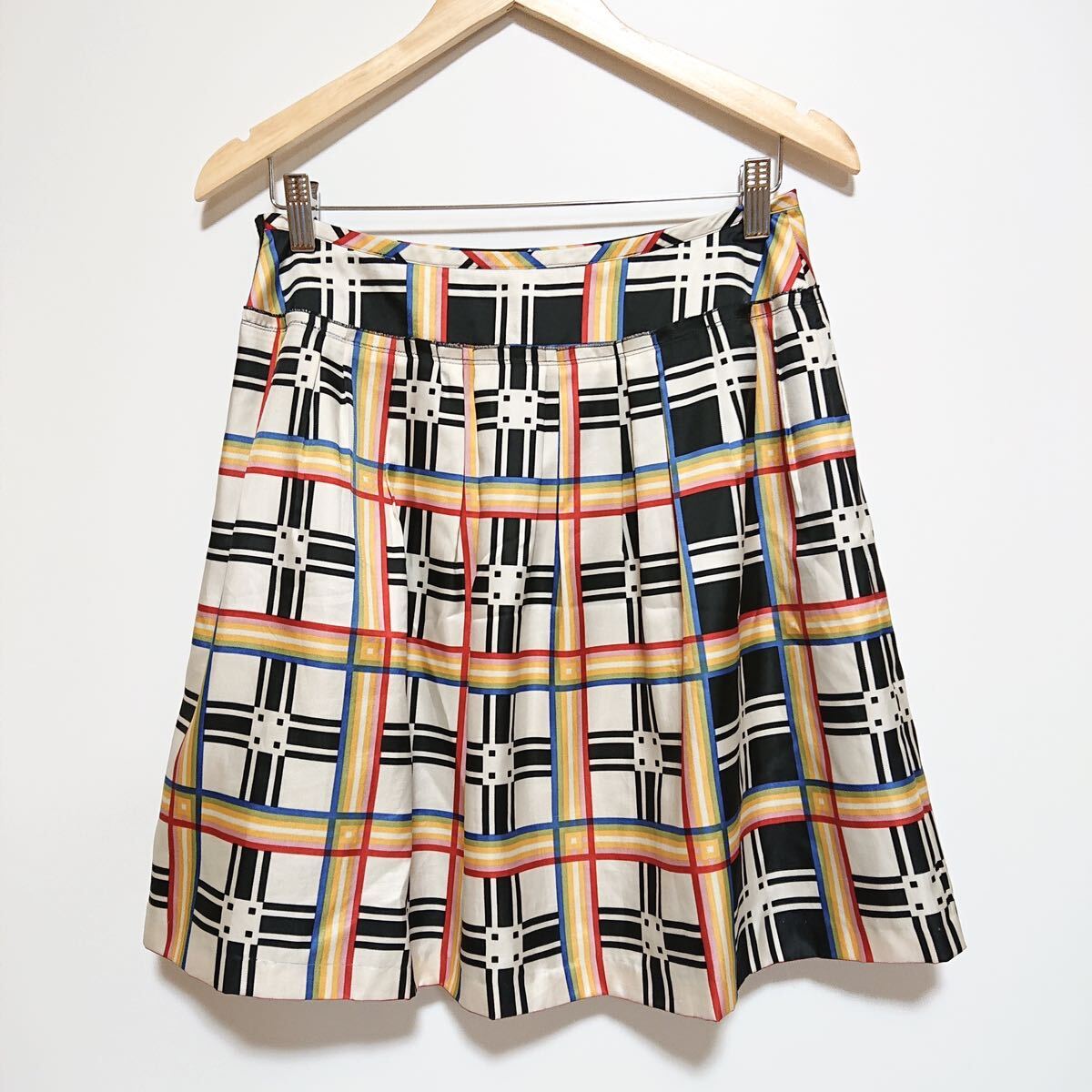 H9757gg SONIA RYKIEL ソニア リキエル サイズ40(L位) スカート 総柄 チェック 白 黒 レディース おしゃれ ひざ丈 カジュアル 古着