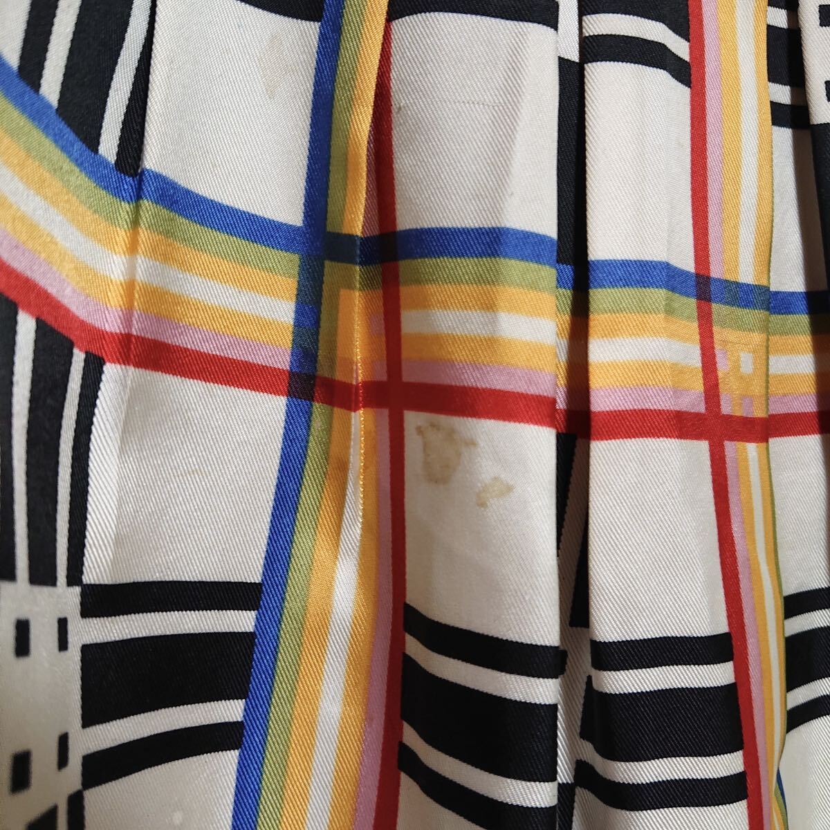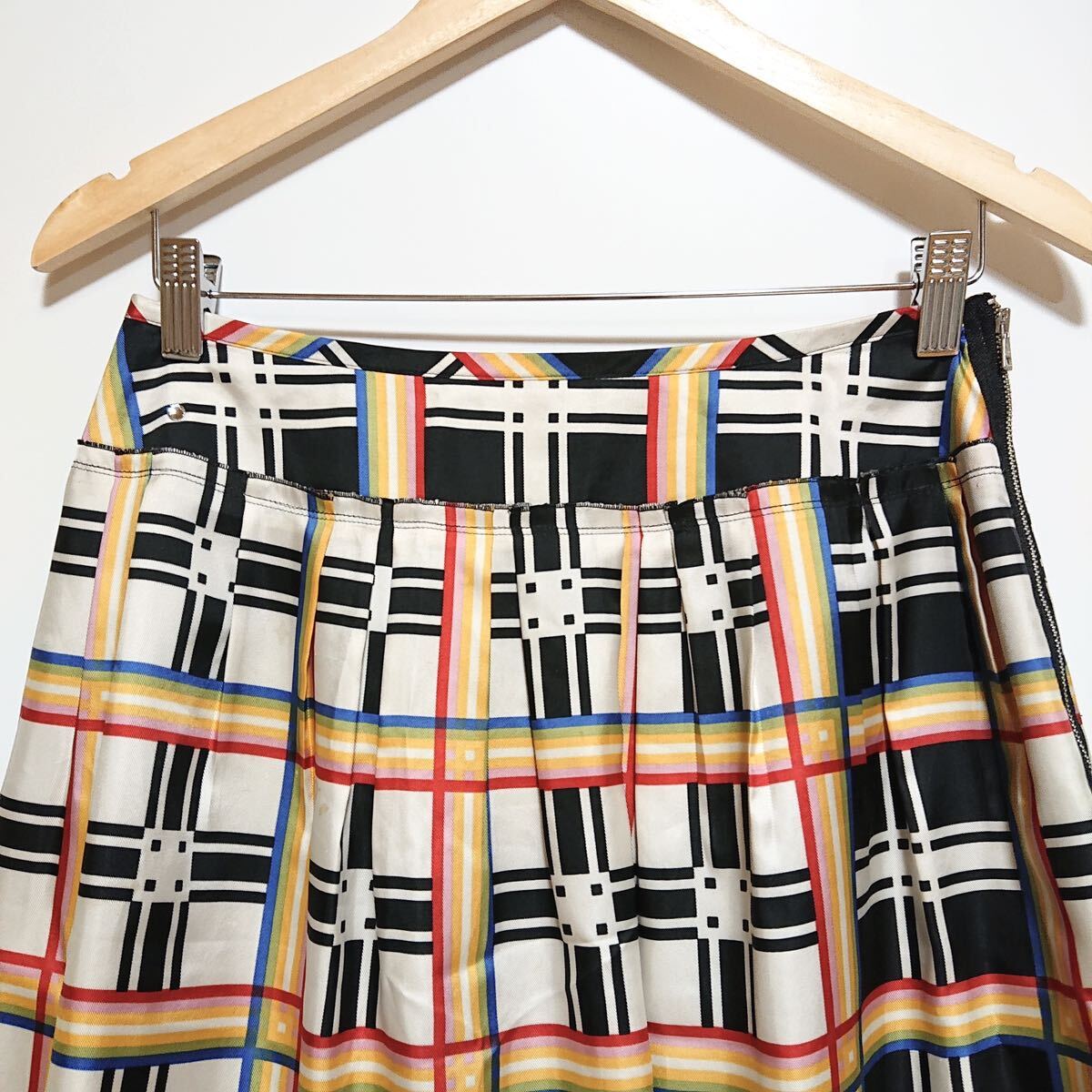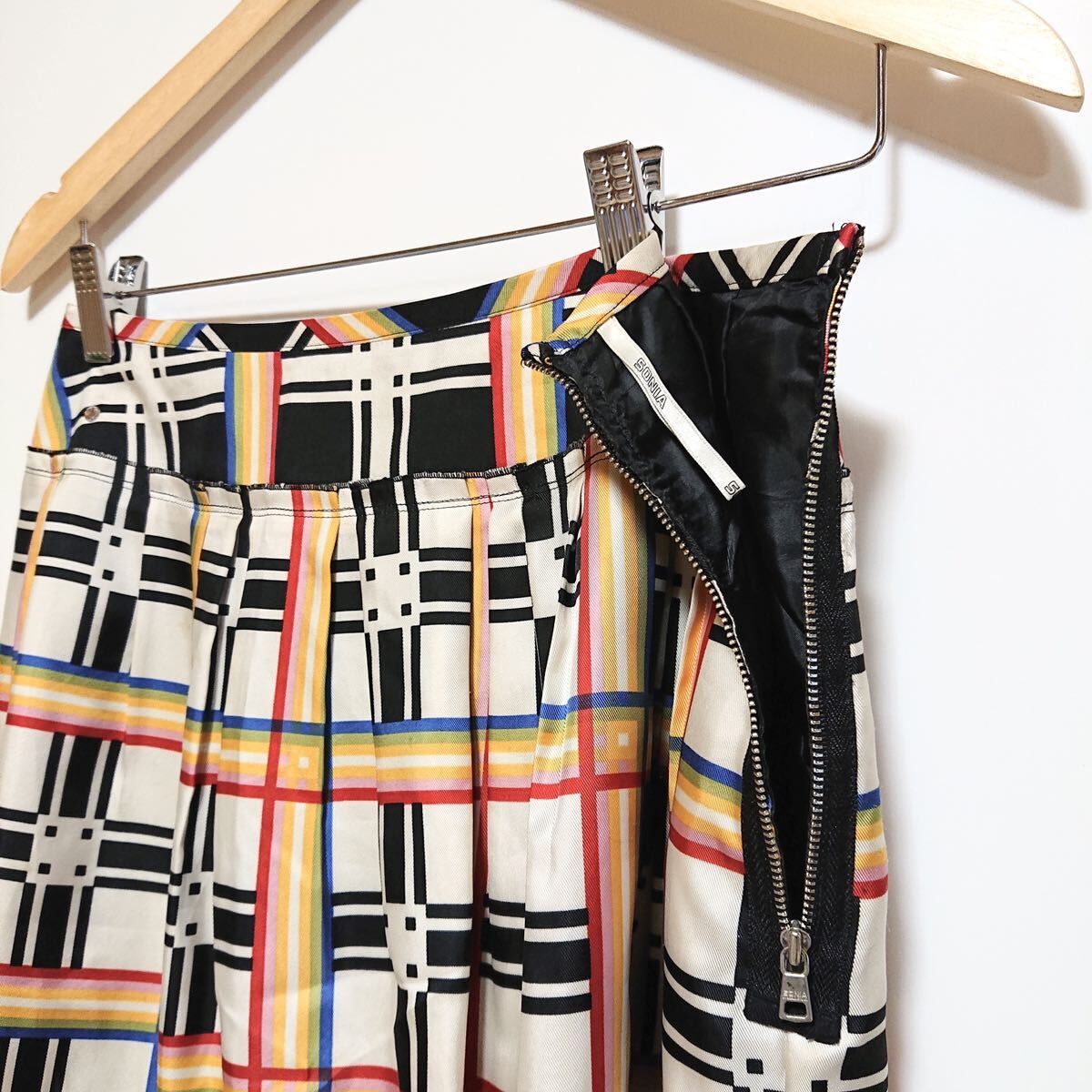 H9757gg SONIA RYKIEL ソニア リキエル サイズ40(L位) スカート 総柄 チェック 白 黒 レディース おしゃれ ひざ丈 カジュアル 古着