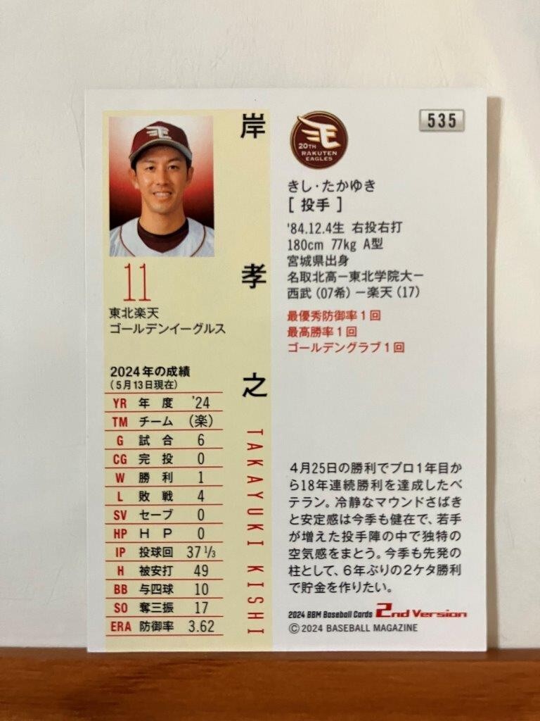 【2024 BBM 2nd】535岸孝之(東北楽天ゴールデンイーグルス)レギュラーカード※キラカード版