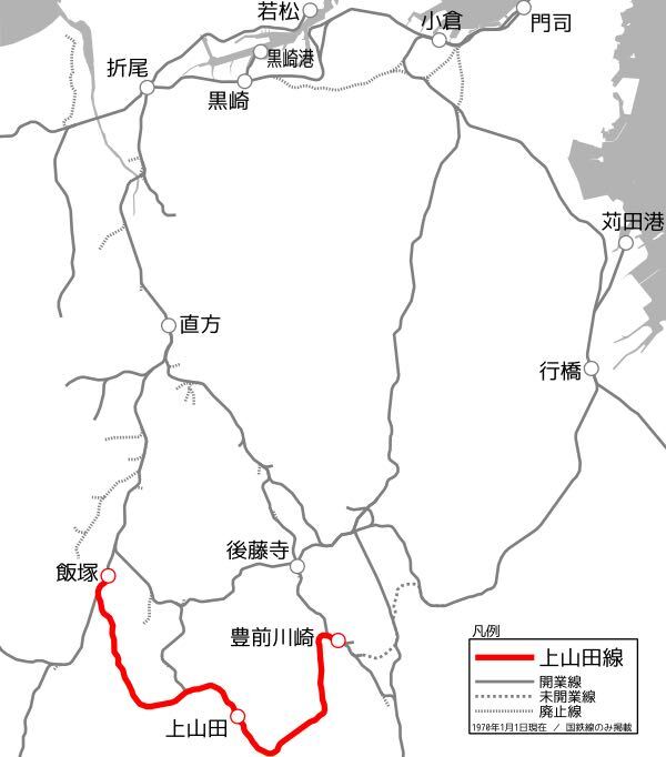 画像参照。筑豊本線の折尾から上山田線の上山田までの区間。