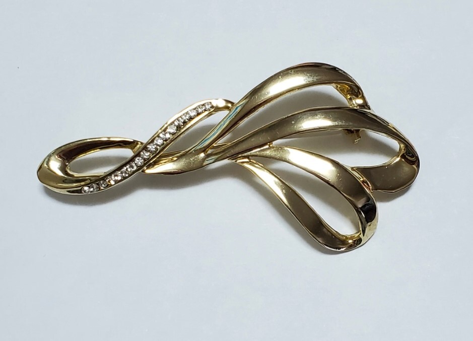 ラインストーン ゴールドカラー ブローチ レディース 8,5㎝ 24,7g 美品