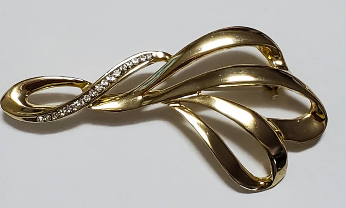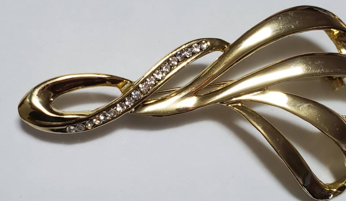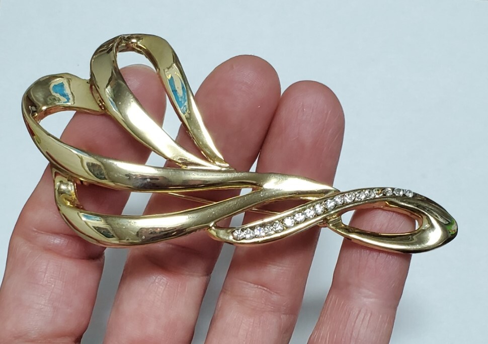 ラインストーン ゴールドカラー ブローチ レディース 8,5㎝ 24,7g 美品