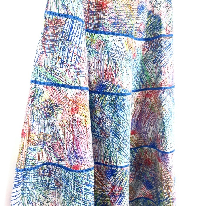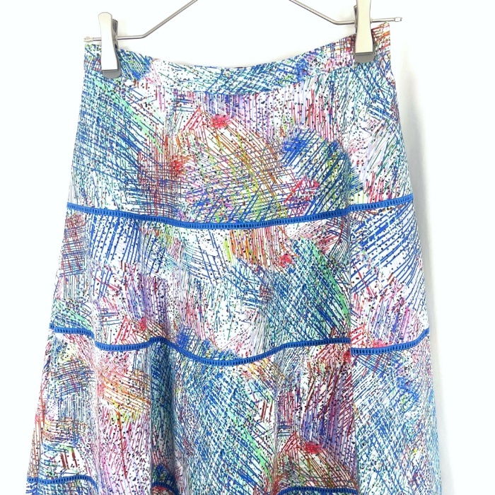 | 【コメント】 色鮮やかでカラフルな柄が素敵なフレアロングスカートです。 気になる汚れはなく、状態の良い綺麗なお品物です。 |