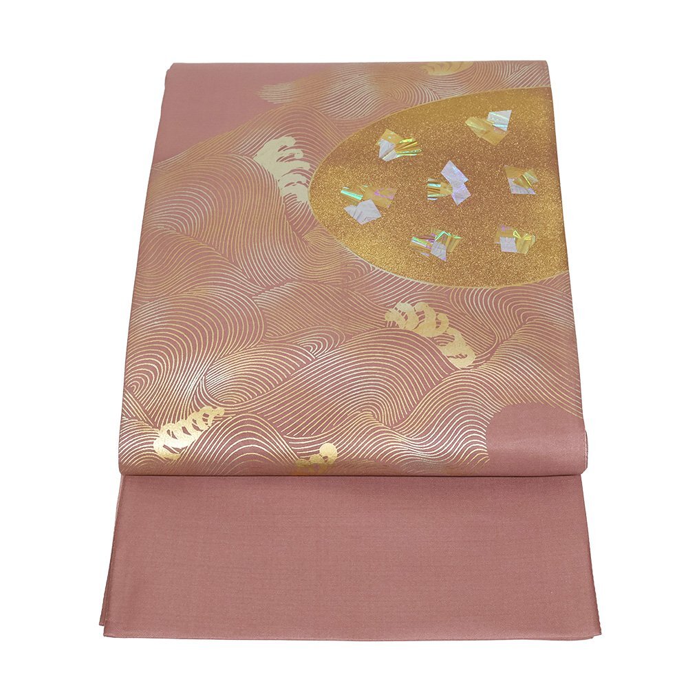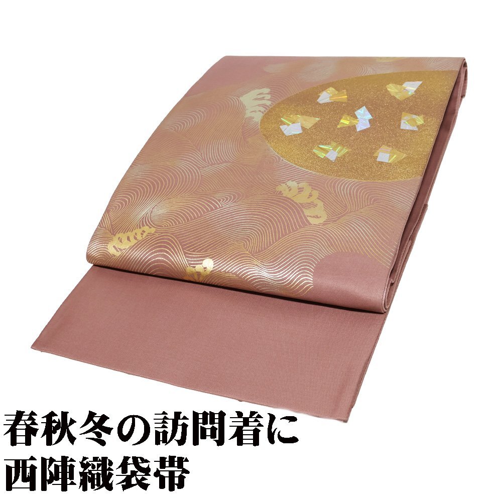 | 西陣織袋帯 小豆色地 金箔・荒波に格子 新品 仕立て上がり | |