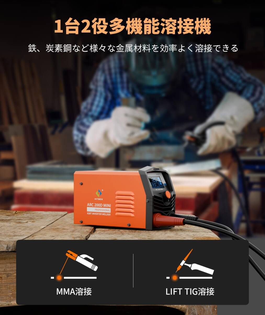 HITBOX アーク溶接機 100V専用 140A 被覆アーク溶接 LIFT TIG 1台2役 簡易MMA溶接機 DIY 初心者向け 液晶表示 インバーター ARC200D MINI