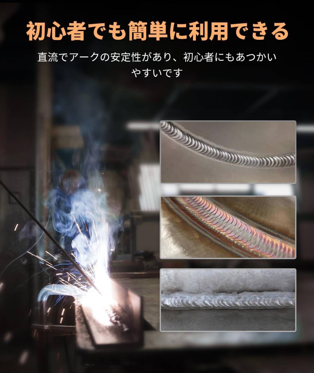 インバーターは搭載して、アークを安定させやすい。使用率オーバー防止機能が付いており、過熱・過電流の場合では自動的に電源が切れます。