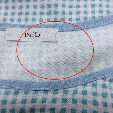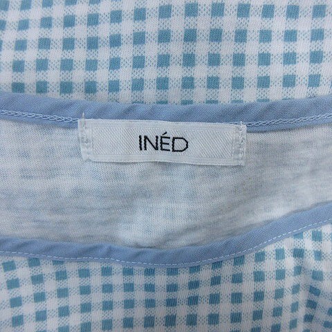 イエナ IENA カットソー ボートネック ギンガムチェック フレンチスリーブ 2 水色 ライトブルー /AU ●RY レディース