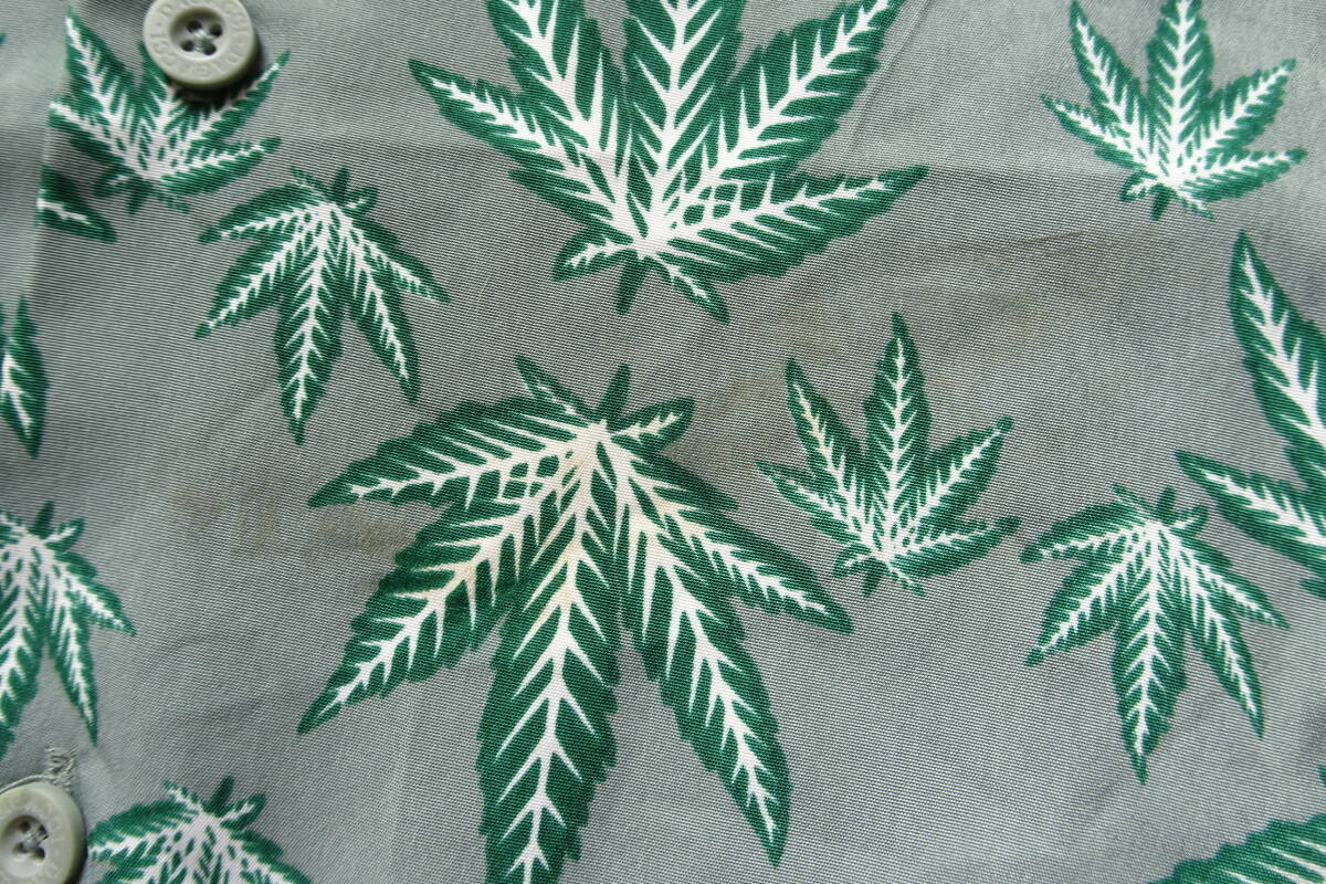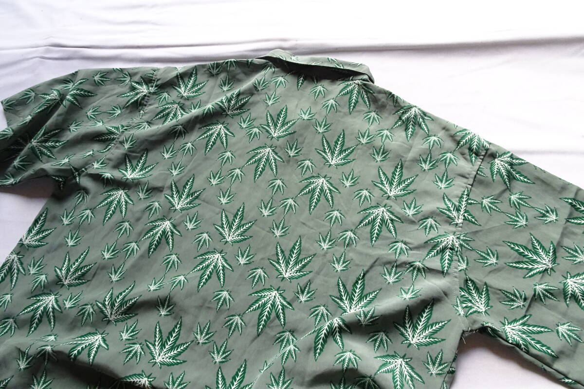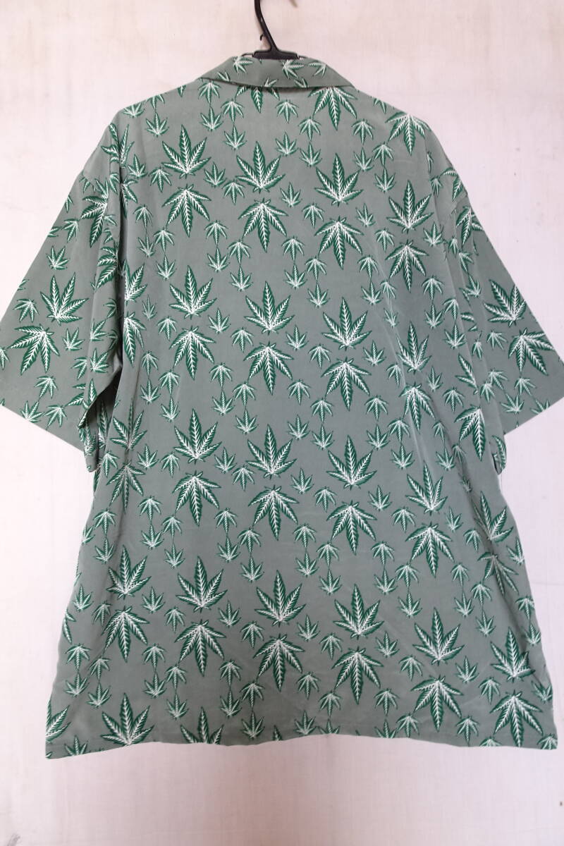 DAGACCI/半袖シャツ/オープンカラーシャツ/ヘンプ/葉っぱ柄/ボタニカル柄/くすみ緑/スモーキーグリーン/XLサイズ(8/22R)