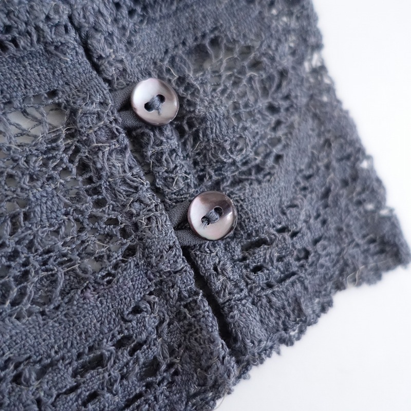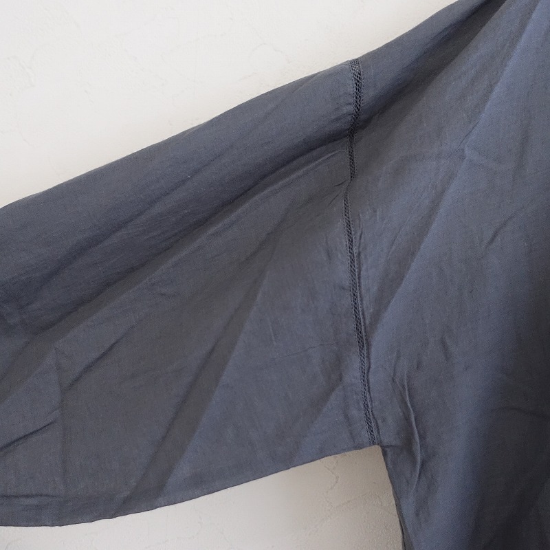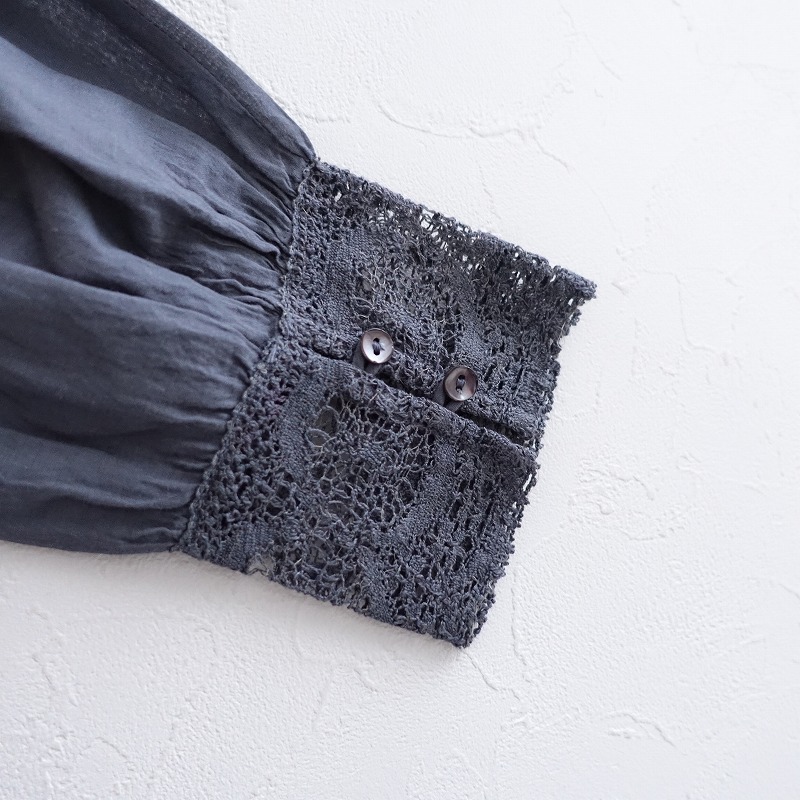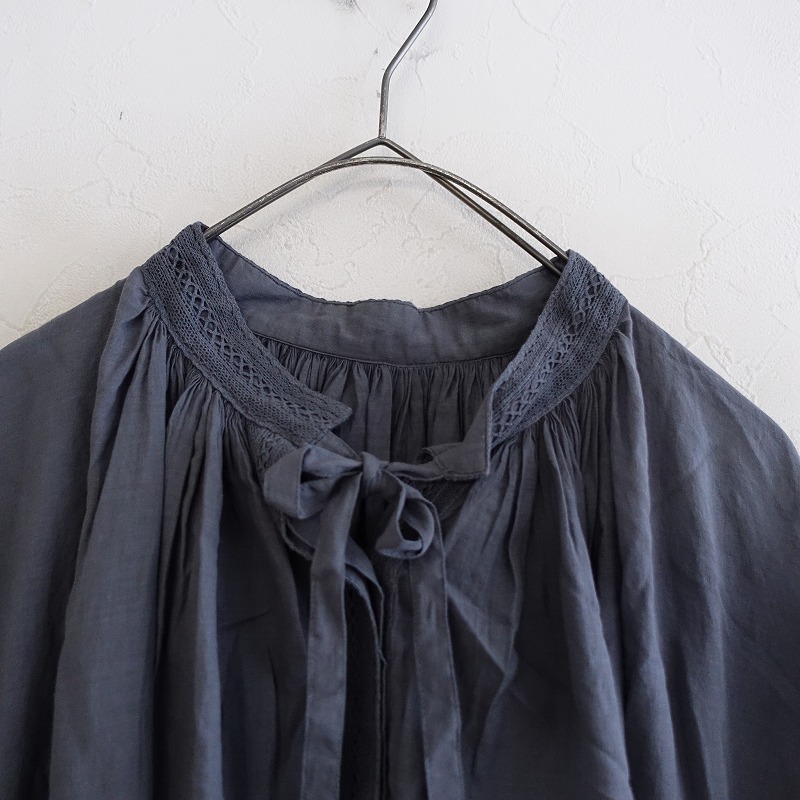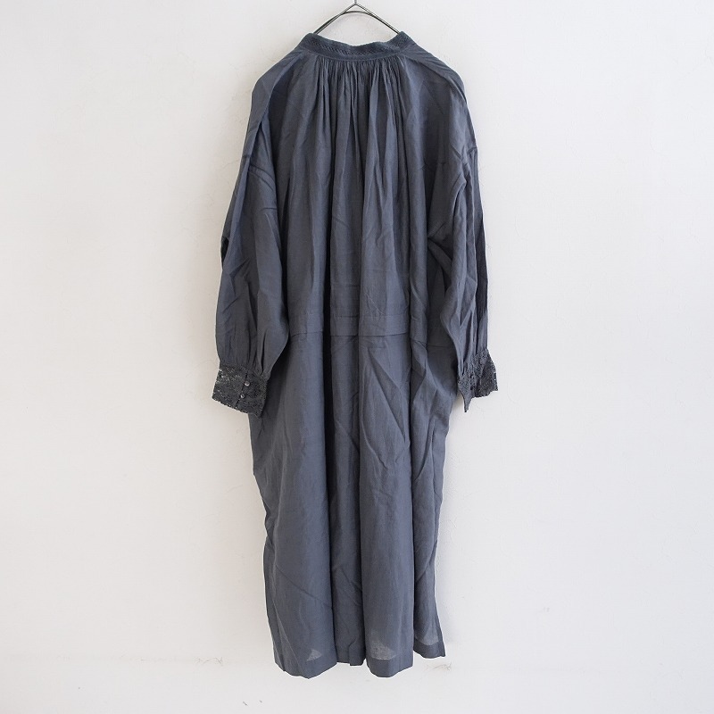 maison de soilの100’s カディネックギャザードレスです。カラーはダークグレーでカディコットン×レースで切り替えられております。襟元にギャザー入りで身幅の広いシルエットになっており、比翼ボタン半開で着脱できます。ウエストにタック入り、両サイドにシームポケットが付いており、定価(メーカー希望小売価格)37,400円 税込みの商品です。 |