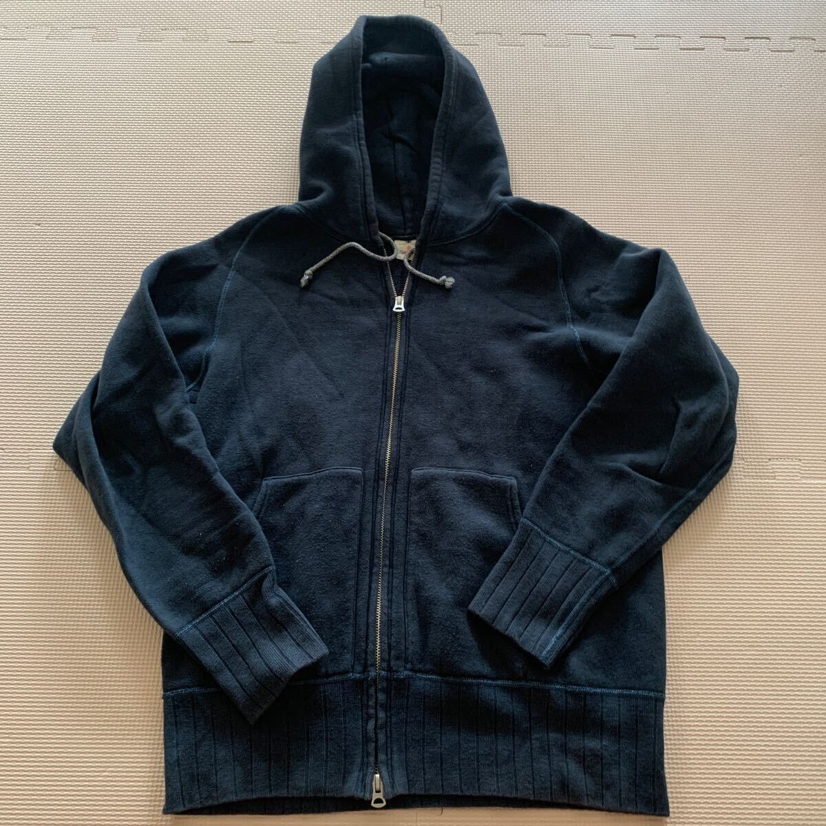 【TWO MOON】トゥームーン フルジップパーカー ジップアップ スウェット パーカー 40 ネイビー 長袖 universalジップ フェード ラグラン