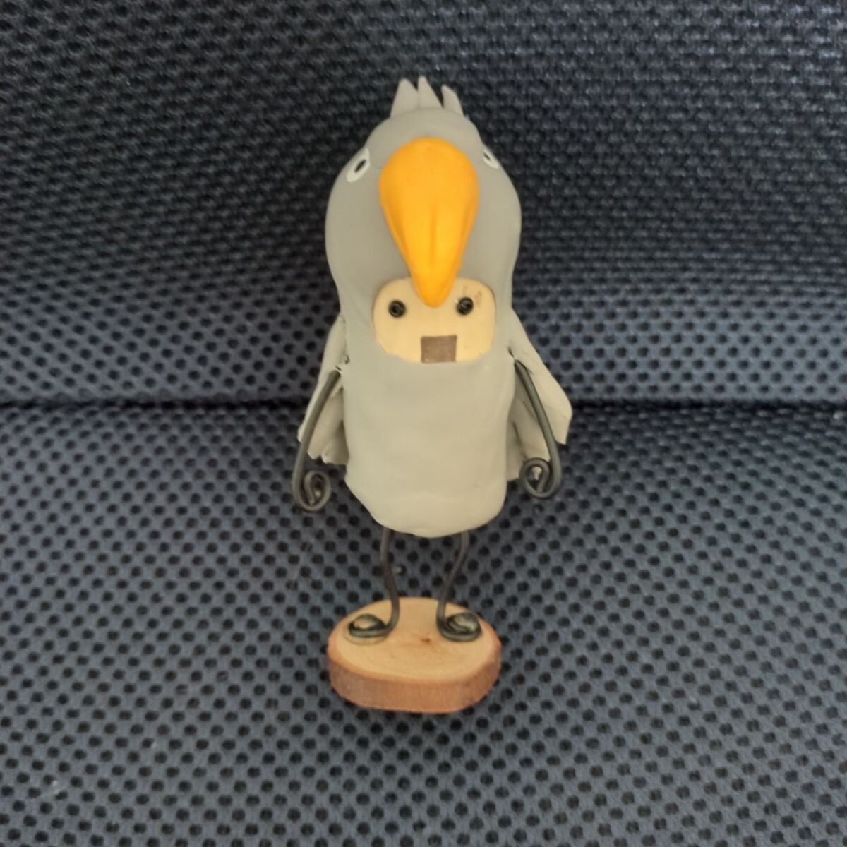 ハンドメイド作家のjeiさんのコルク人形になります。コルク人形がハシビロコウの着ぐるみを着ています。袋に入れて飾っていたのでホコリなどなく、キレイです。