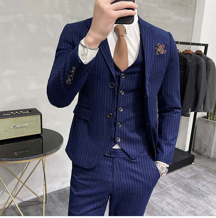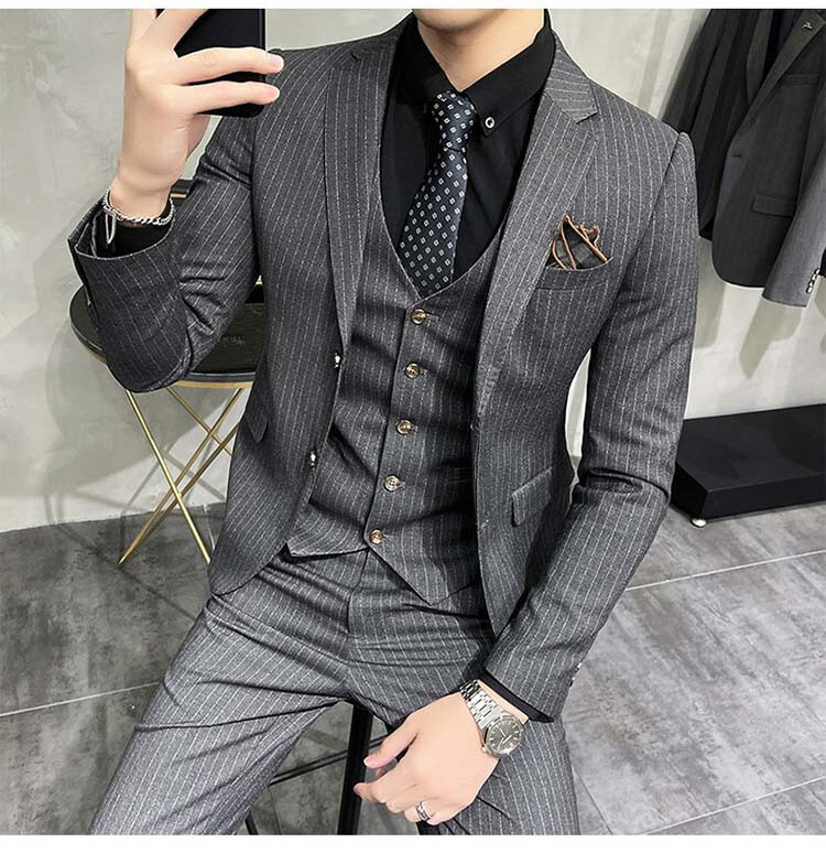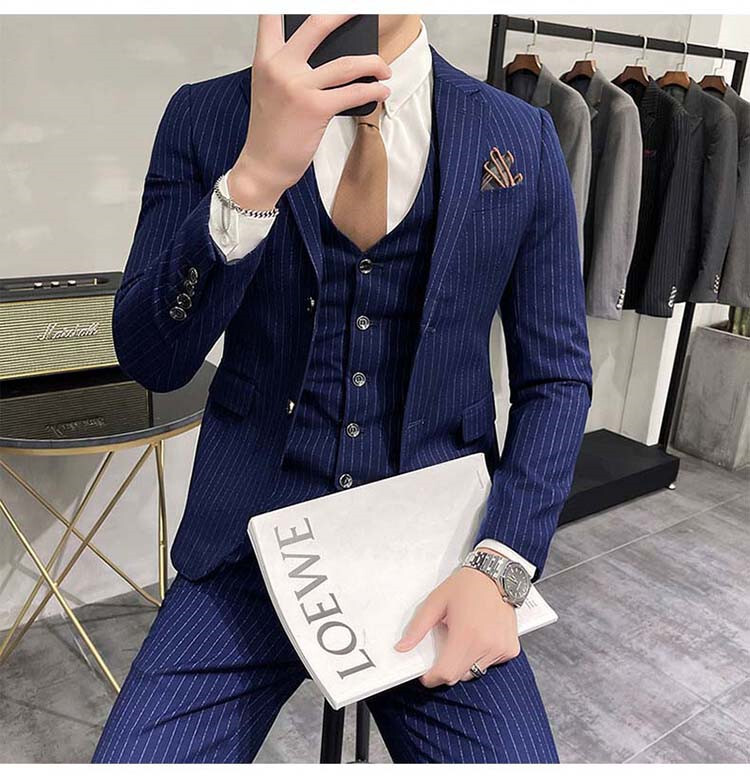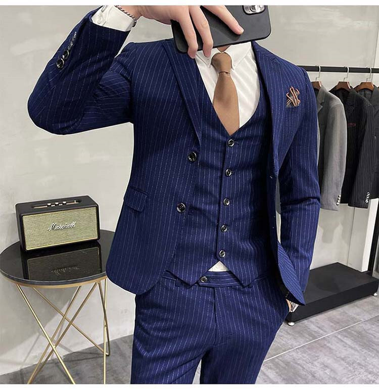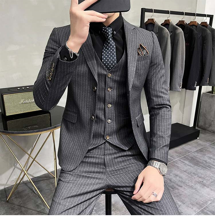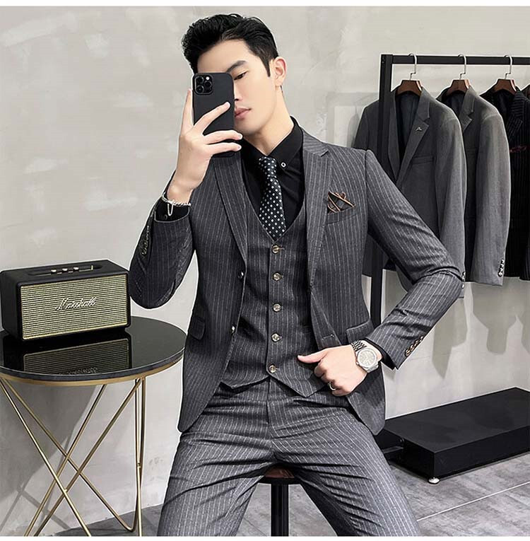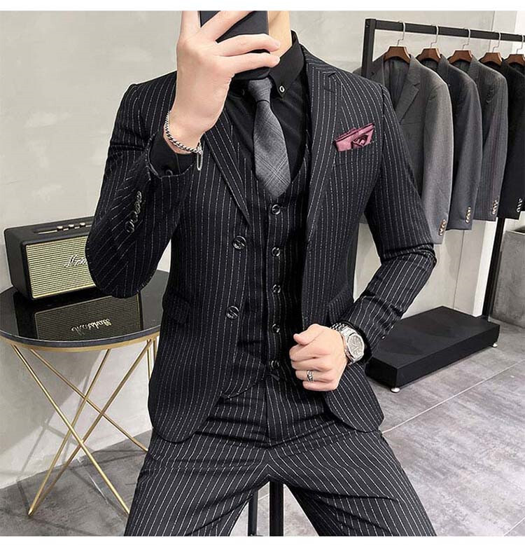スーツ メンズ 3ピーススーツセットアップ ビジネススーツ フォーマルスーツボーダー柄 カジュアル 二次会 成人式 就職活動 S~5XL/24XF12
