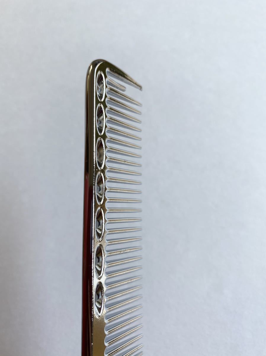 高品質のステンレス鋼を使用し、耐熱、抗菌、さらに静電気を帯びにくいメタルカットコームです。