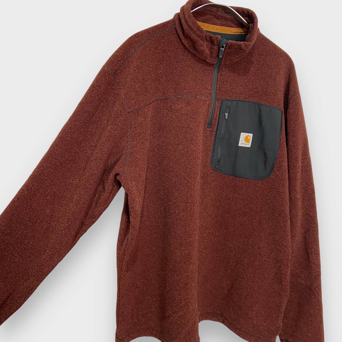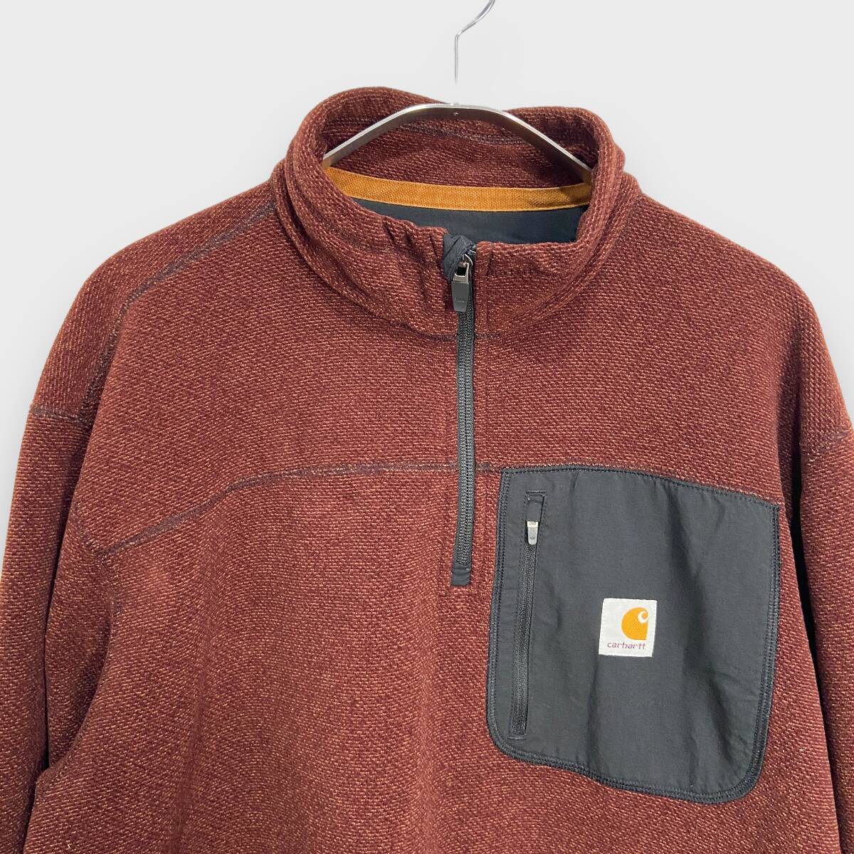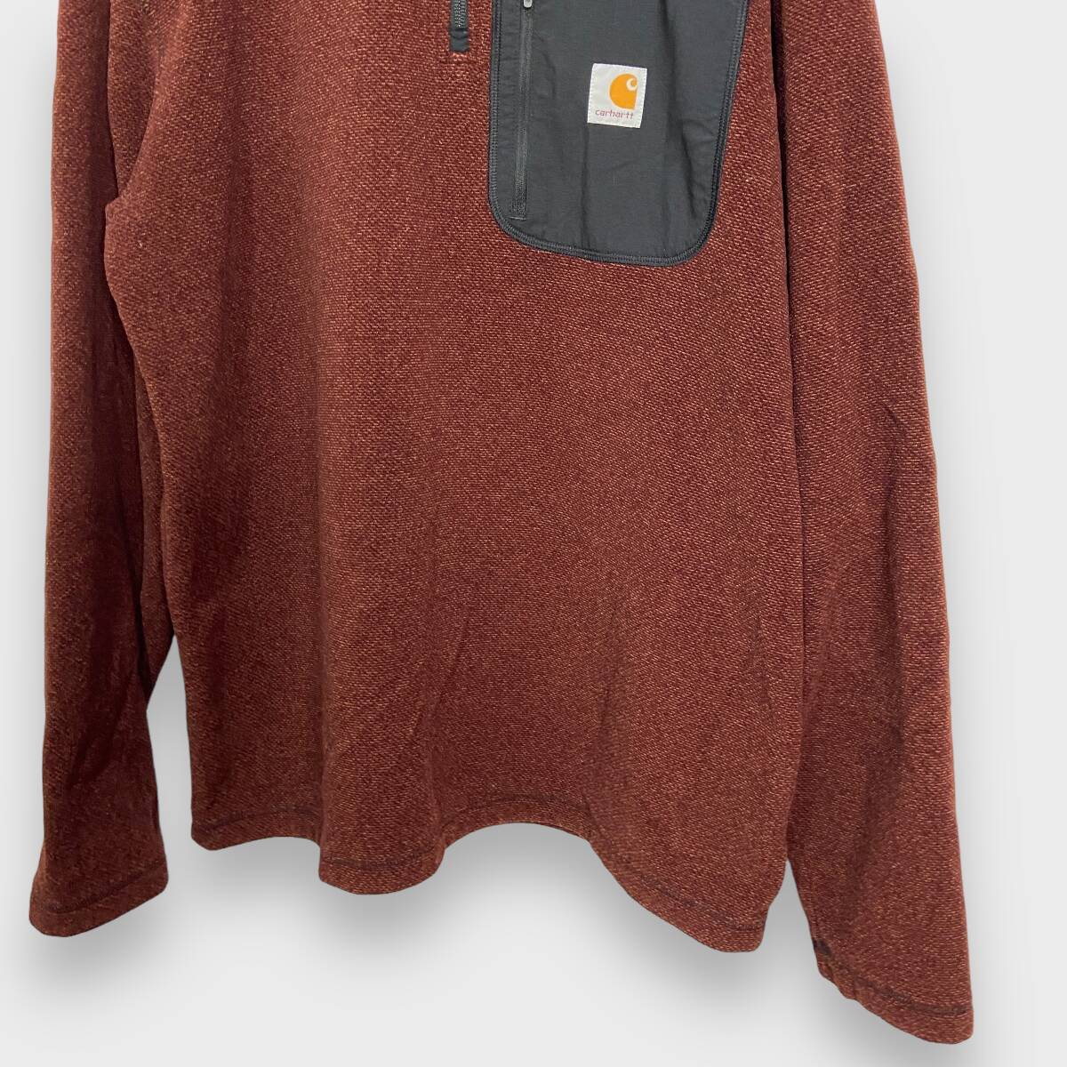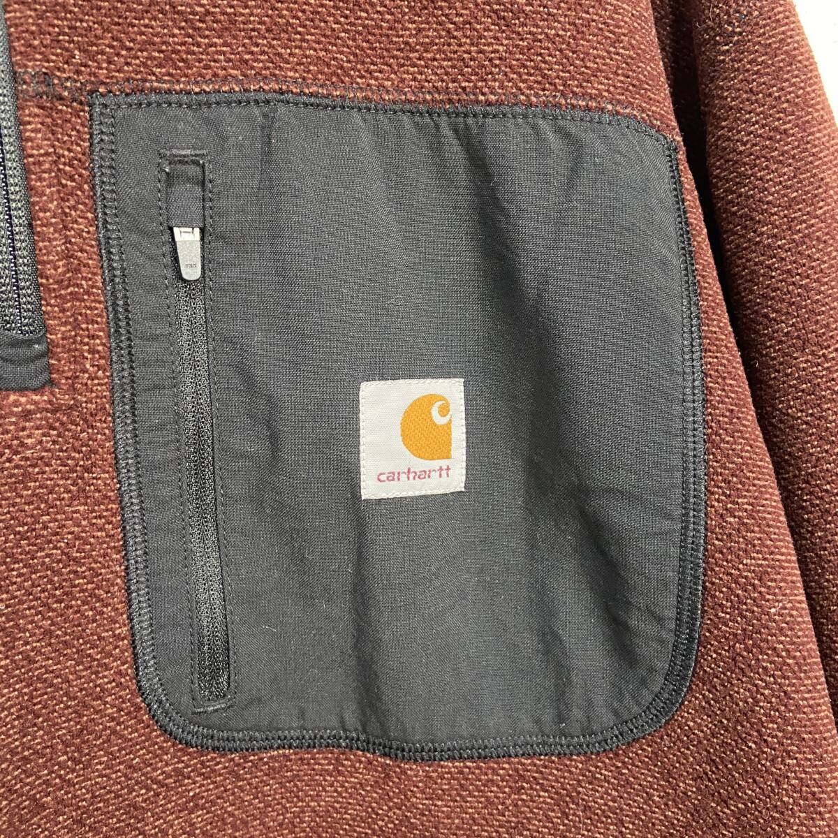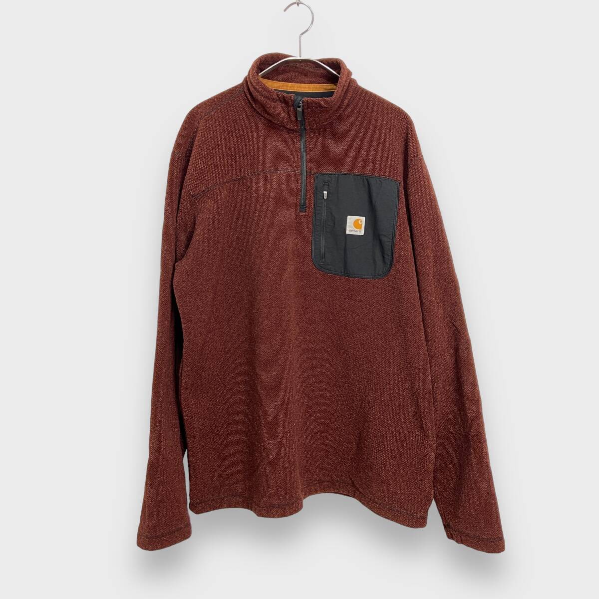 送料無料☆carhartt☆カーハート☆ハーフジップフリースプルオーバー☆フリースセーター☆ワンポイントロゴ☆赤茶☆H24M
