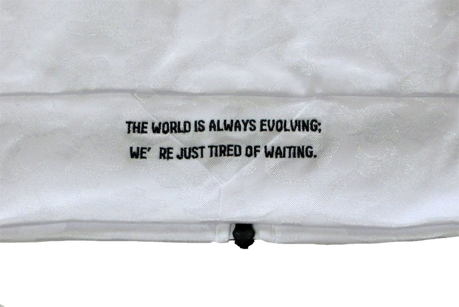 背中のメッセージ刺繍がポイント。