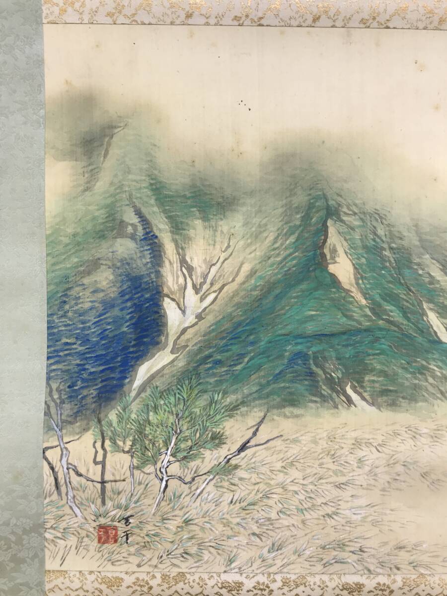 真作/奥本高干/青緑山水図/横物/山水図/掛軸☆宝船☆AG-546