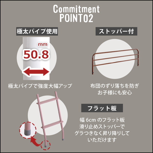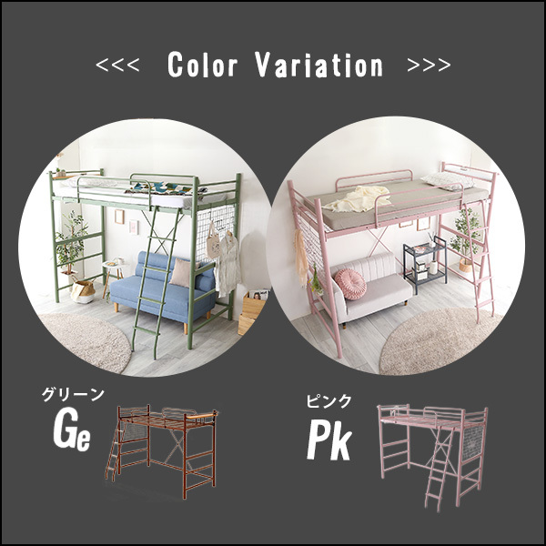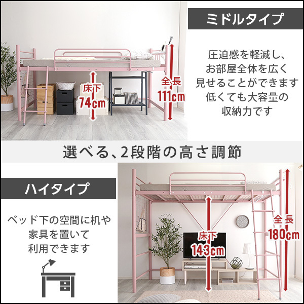 高さ調整可能 宮・コンセント付き ロフトベッド ORCHIS-オーキス- ピンク
