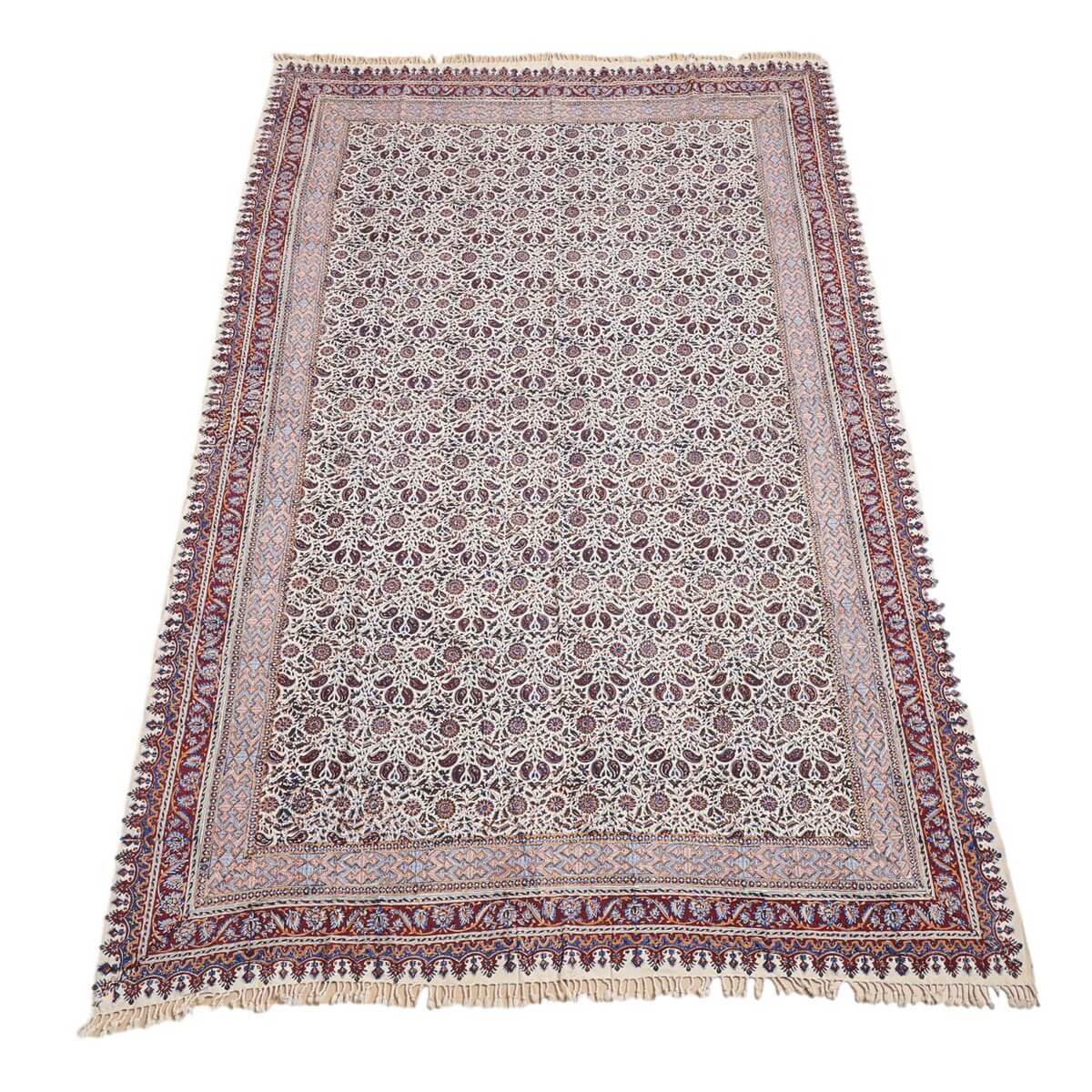 品番:GC-12274サイズ:240×160cm厚み:写真で表示(読み方例:1567=15.67ミリ)産地:イラン・イスファハーン素材:コットン100%生地の色:ベージュ送料:無料唐草模様はペルシャからシルクロードを伝って日本に伝来したと言われます。生地はしっかりと厚みのある木綿100%の一枚布でシワになりにくいので、ソファカバーやベッドカバー、またカーテンのような間仕切りに使ったりと大変使いやすいインテリアファブリックです。ペルシャ更紗(ガラムカール)は、年季の入った幾つもの手彫りの木型を使い、型を変え色を変えて、何度も何度も手作業で型押しして染められます。イランの古都イスハファーンの工房で、職人が一枚ずつ丁寧に染め付け、全てハンドメイドで仕上げていきます。機械で一度に高速プリントされる布とは違う、手間のかけられた手仕事の職人技をぜひ楽しんでください。手作りの為、押し染めで染料が飛んだり擦れたりした部分や薄い汚れ等がある場合もございます。程度の大きなものはコメントをつけておりますが、商品特性となります。照明の違いで色合いが多少違って見えます。※昼白色での撮影