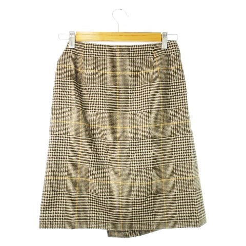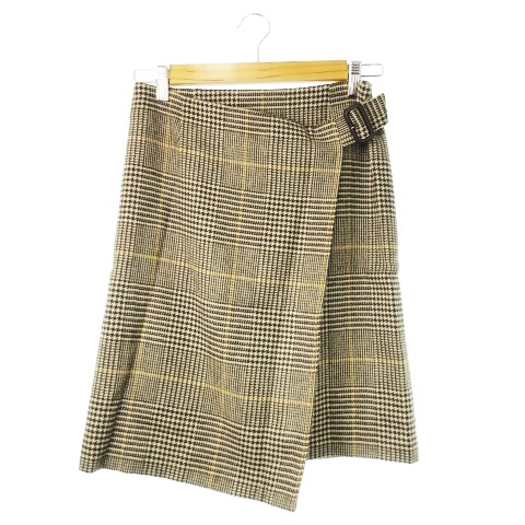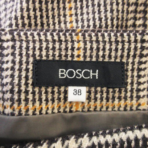 ボッシュ BOSCH スカート ラップ タイト ひざ丈 ウール シルク混 絹混 柔らか ふんわり ベルト チェック 38 茶 ブラウン /CK29 レディース
