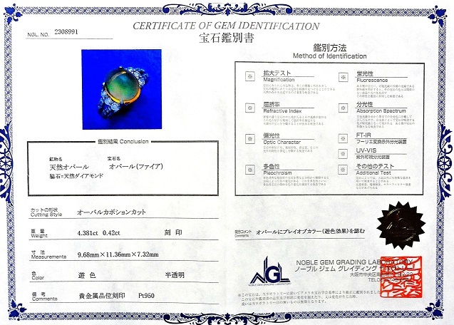石 | 天然オパール 4.381ct ダイヤモンド 0.42ct | |