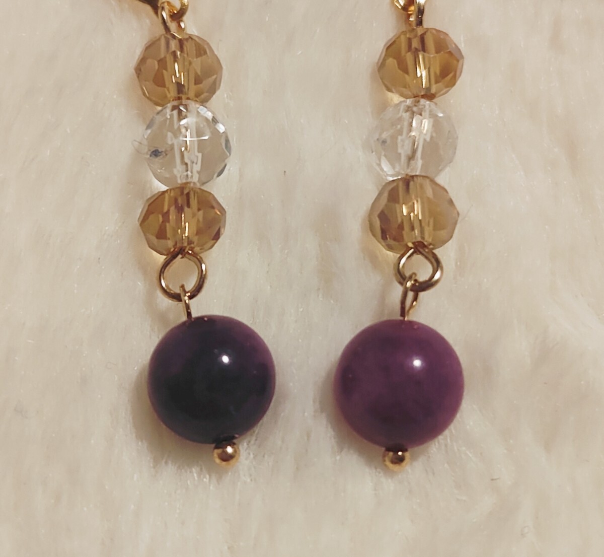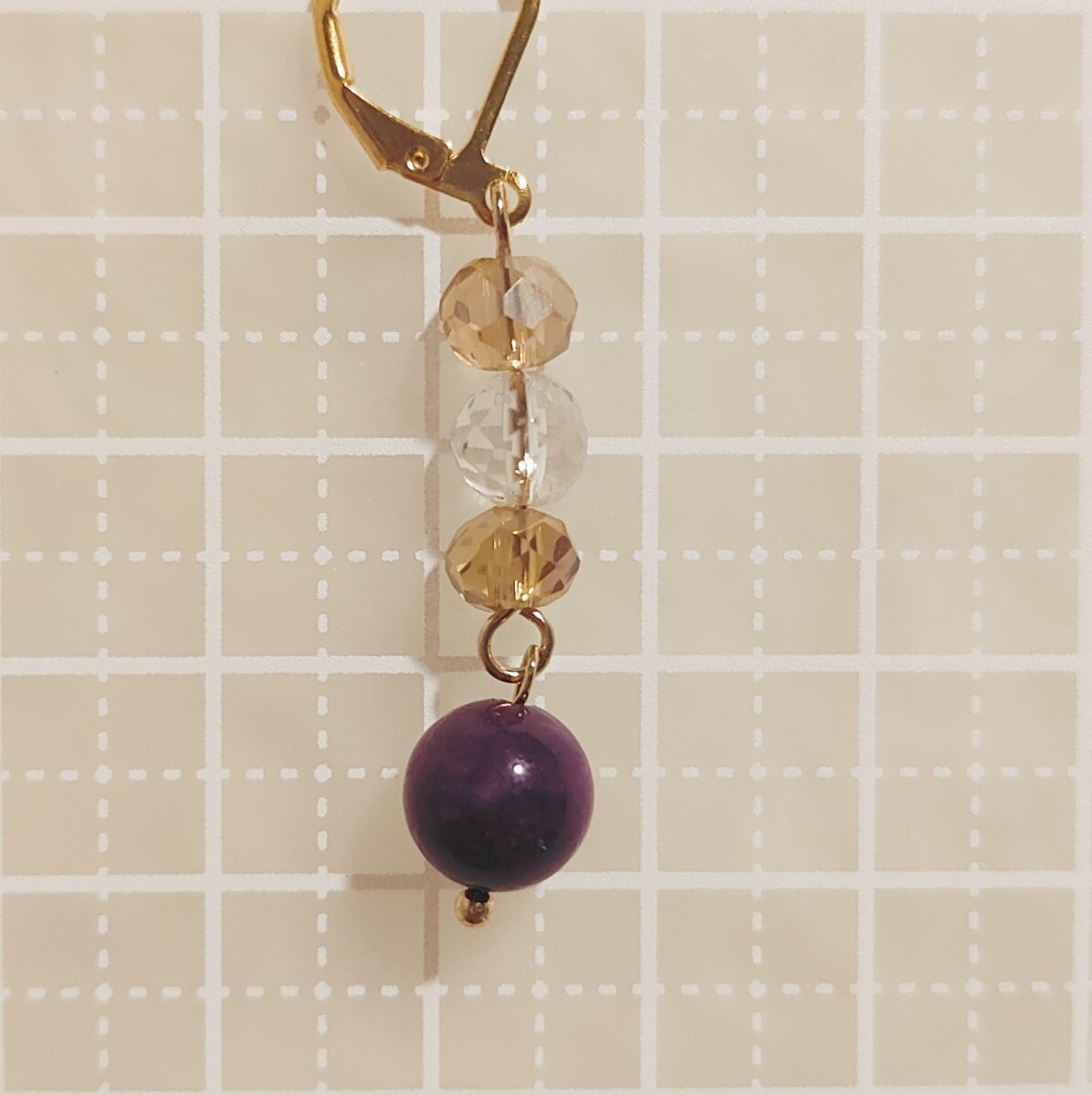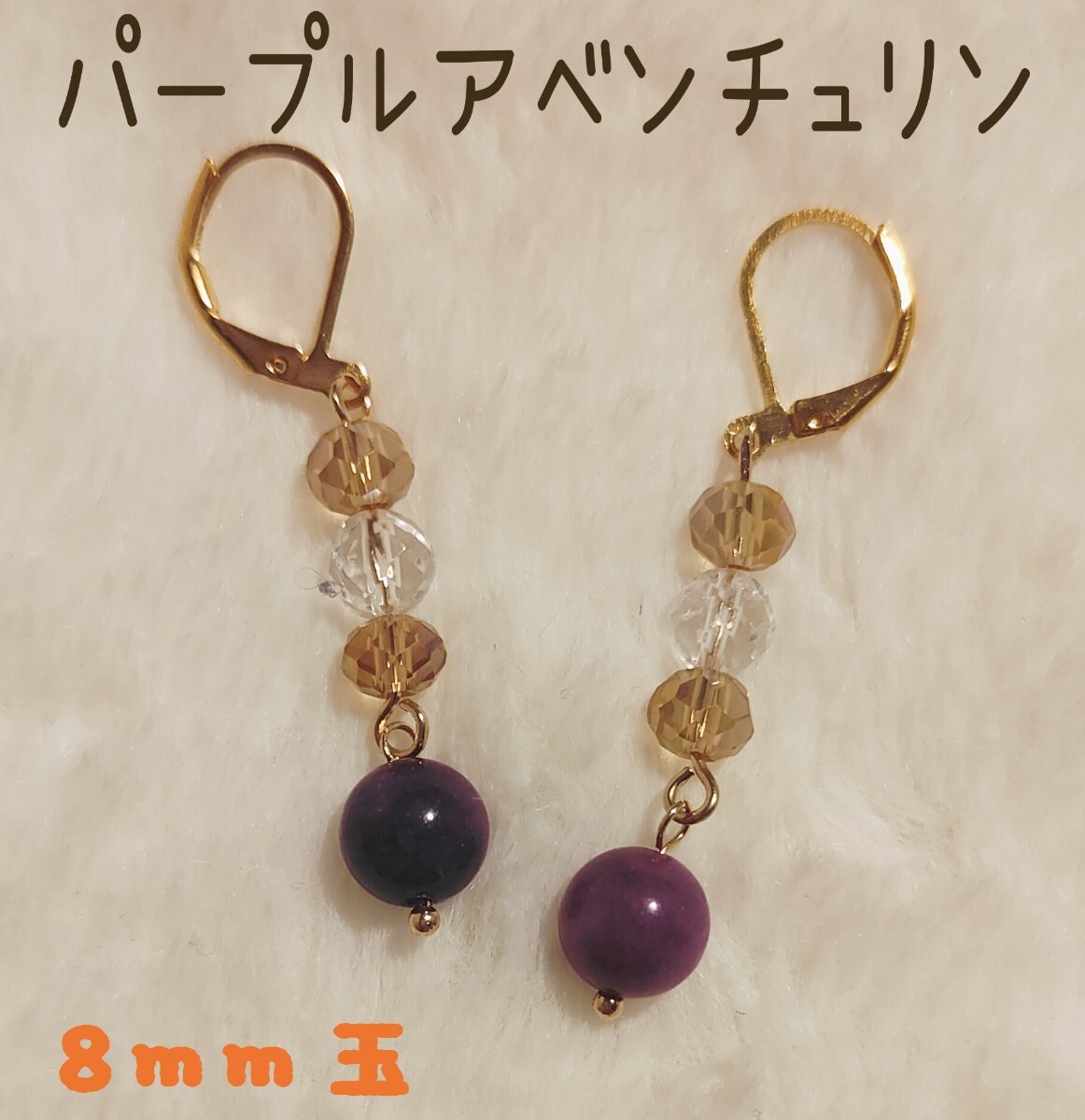 8mm玉のパープルアベンチュリン、6mm玉の水晶にガラスビーズを合わせたパワーストーンピアスorイヤリングです(=^・^=)
