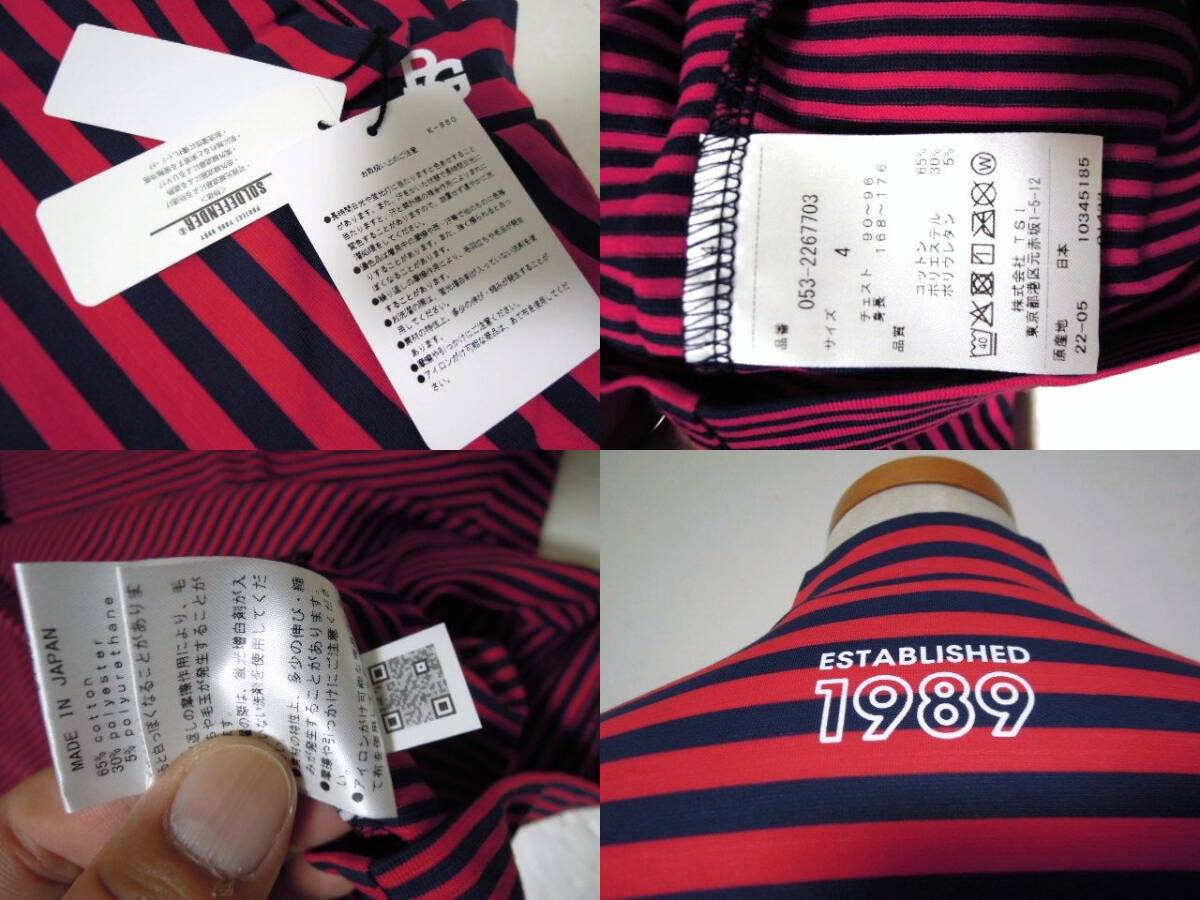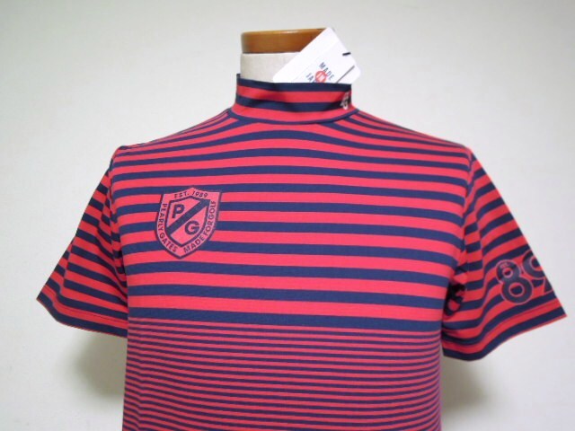 PEARLYGATES●パーリーゲイツ●PG●SOLDE FENDER●機能素材●ストレッチ●ボーダー柄●モックウエアー●赤紺●サイズ④●未使用●正規品