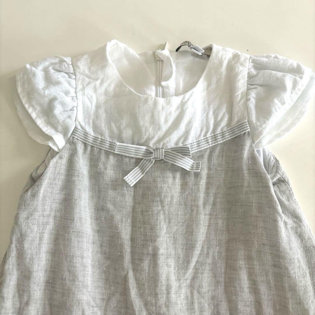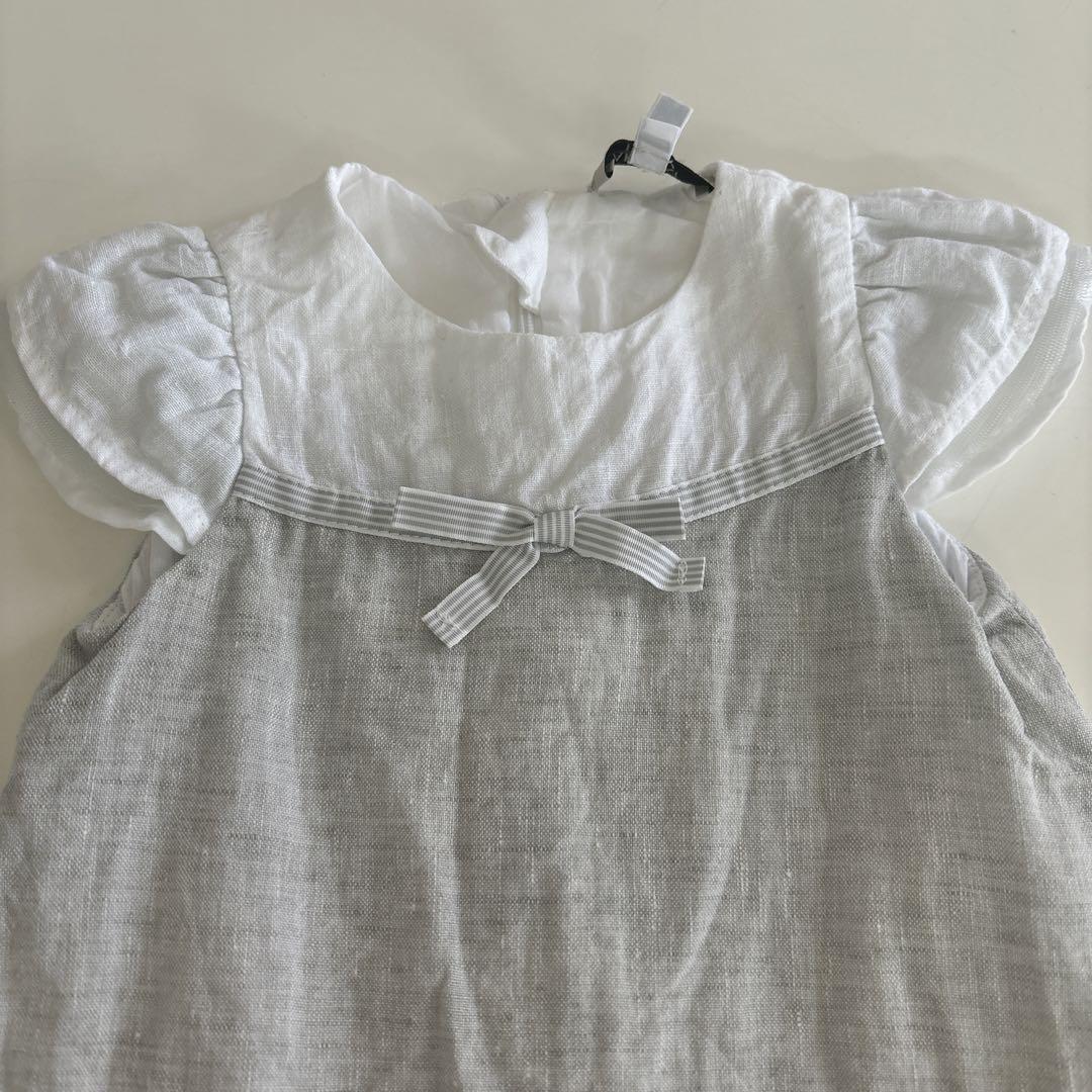 リネン ベビードレス フリル リボン