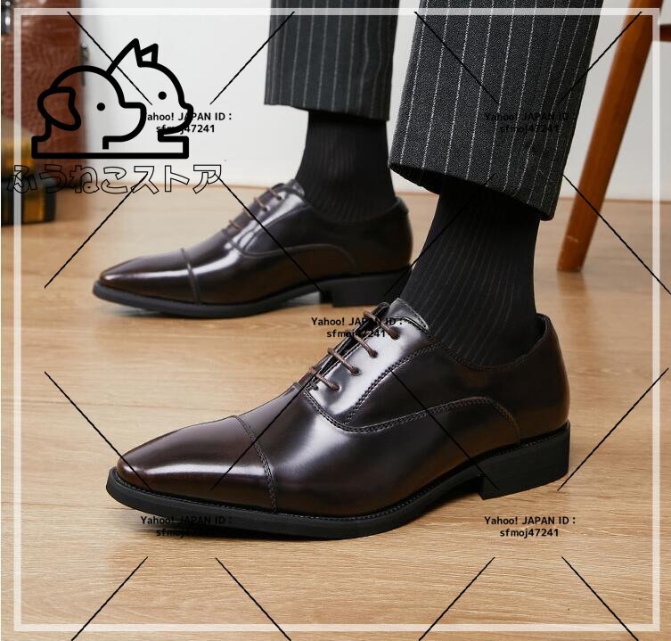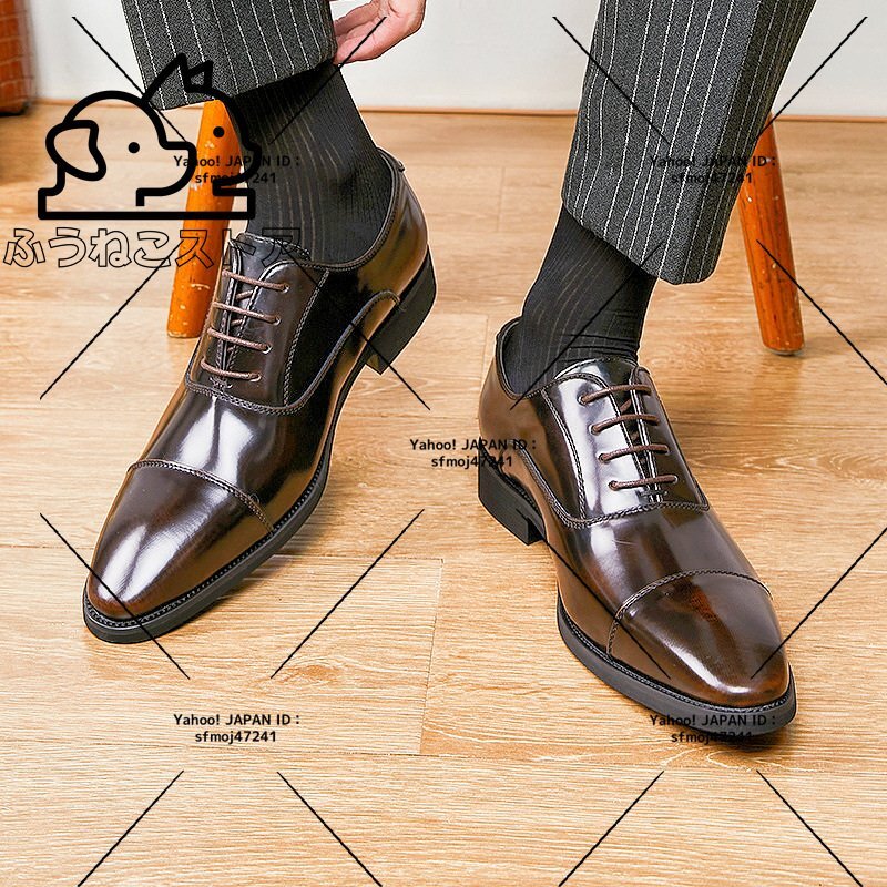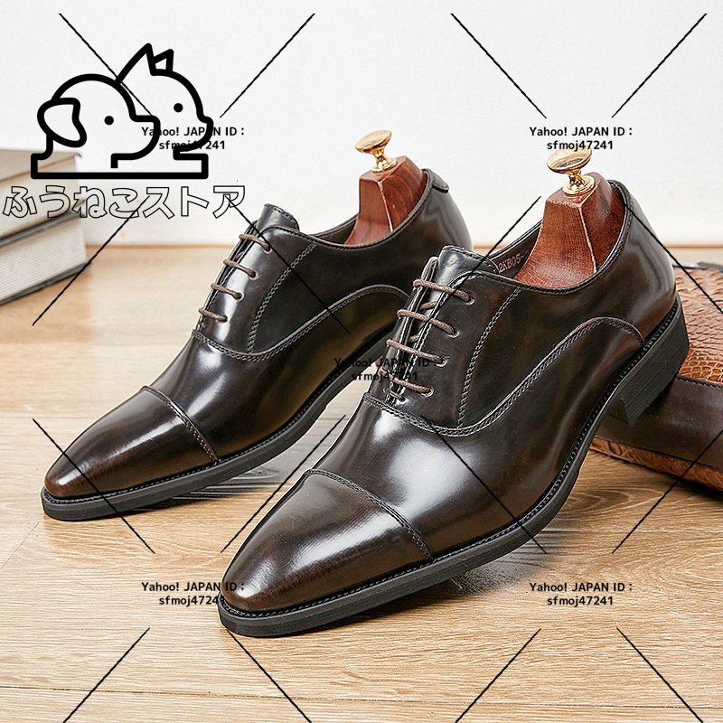 ビジネスシューズ メンズ 上質牛革 レザーシューズ人気新作 職人手作り 手塗仕上げ 本革 艶 光沢 フォーマル紳士靴 ブラウン 24cm~27.5cm