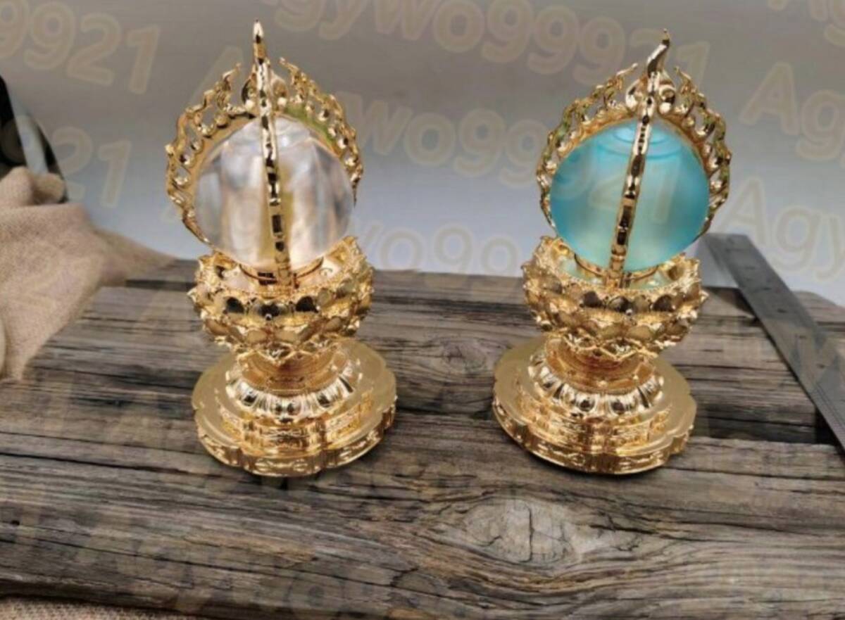 釈迦如来の宝珠です 銅メッキ 瑠璃を携帯する 法具古美術品
