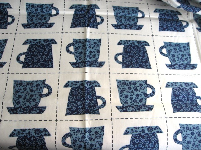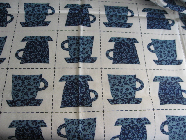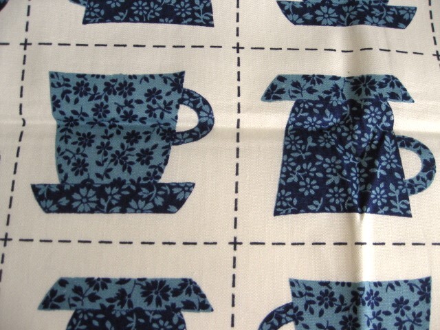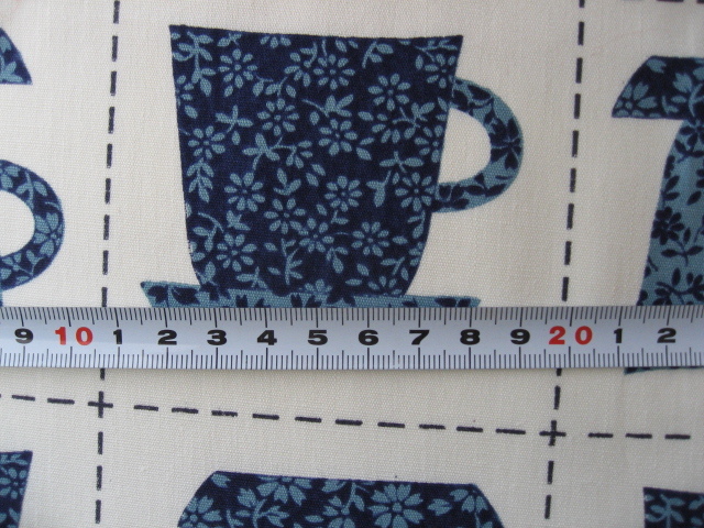 生成り色の地にカップの柄です。写真との誤差はご了承ください。