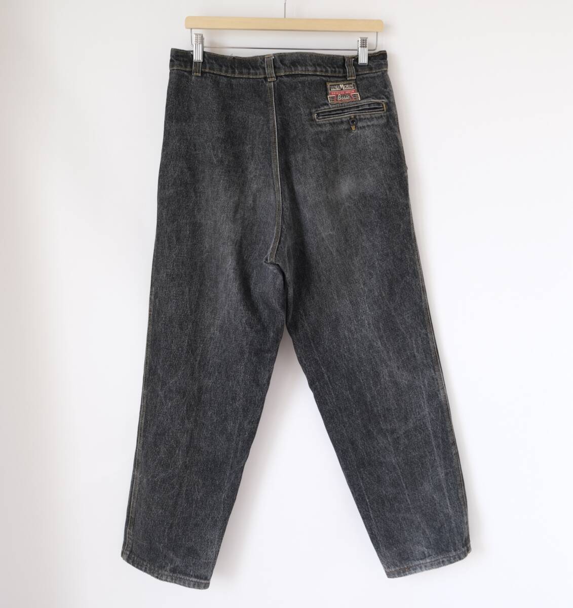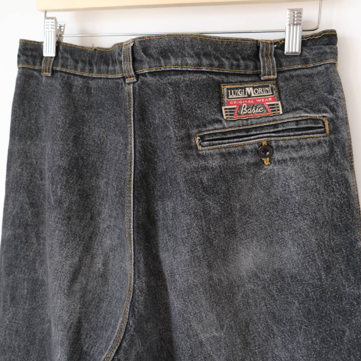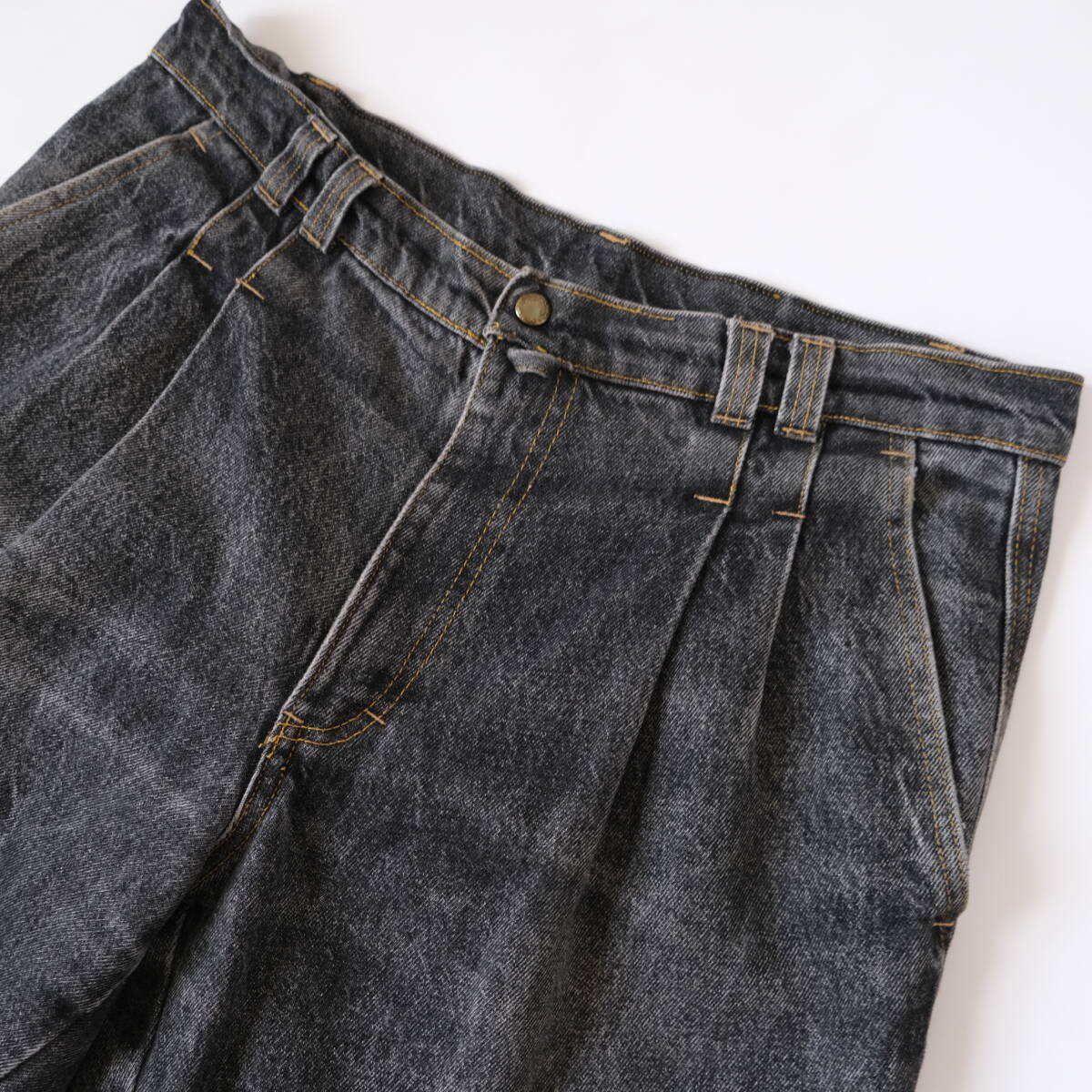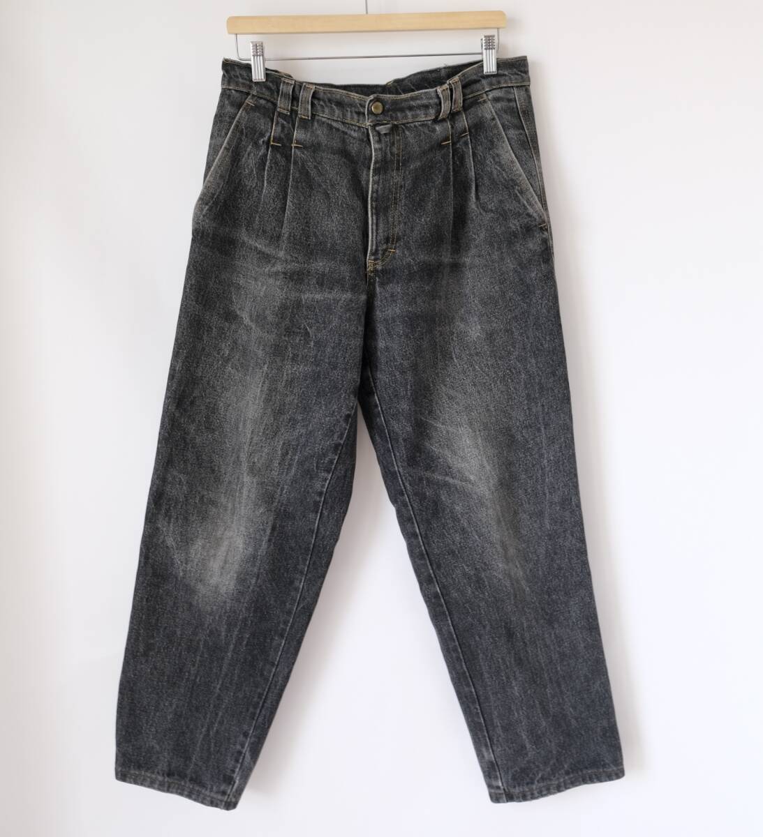 80s【 ヨーロッパ ビンテージ 】先染め ブラックデニム タック トラウザーズ パンツ / 黒系 / W35位 / スラックス フランス ドイツ 古着