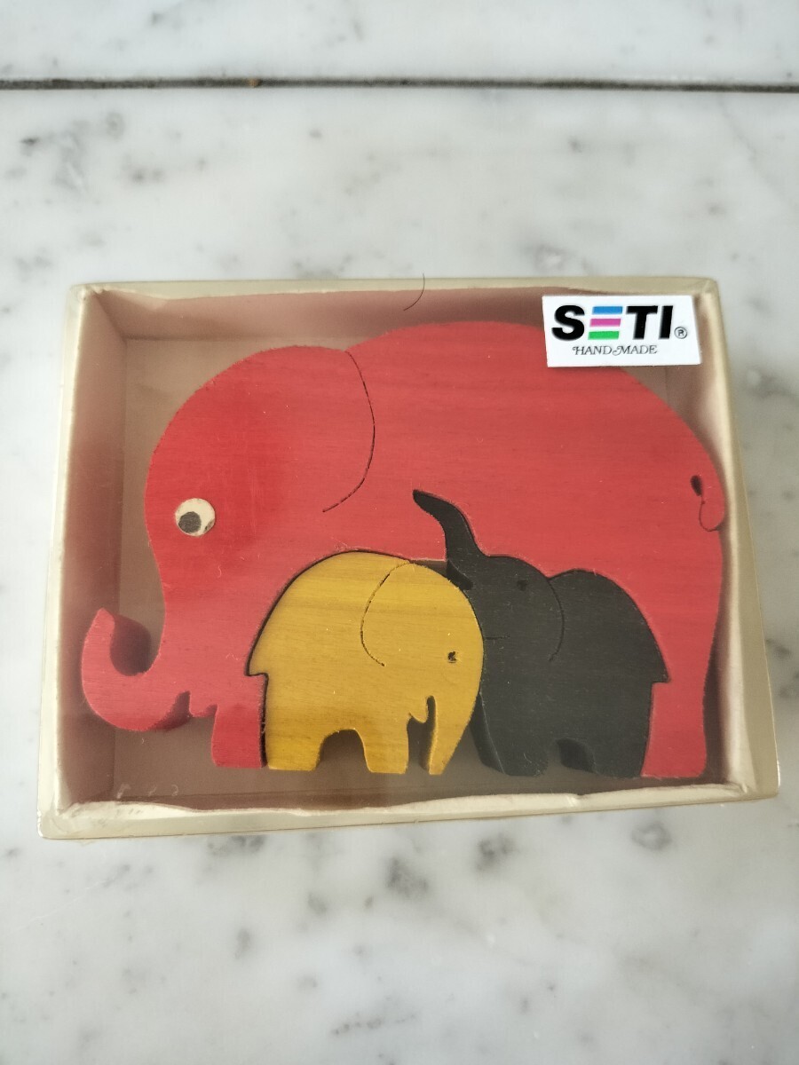 とても可愛いSETI社の木製パズルですので、小さなお子さんの想像力を養う知育にもってこいです。一部に欠けがあるため格安で出品しますので、お薦めですよ!