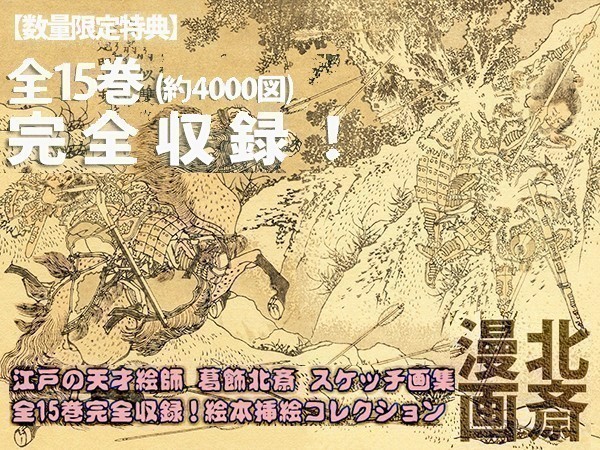 天才絵師・葛飾北斎/絵本挿絵「北斎漫画(全15巻)約4000図」 下絵スケッチ画集/追加収録! 『数量限定・完全フルコンプリート版!』 ◎歌川広重「名所江戸百景」(全119枚完全収録) |