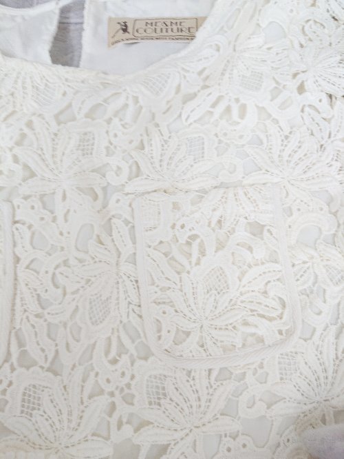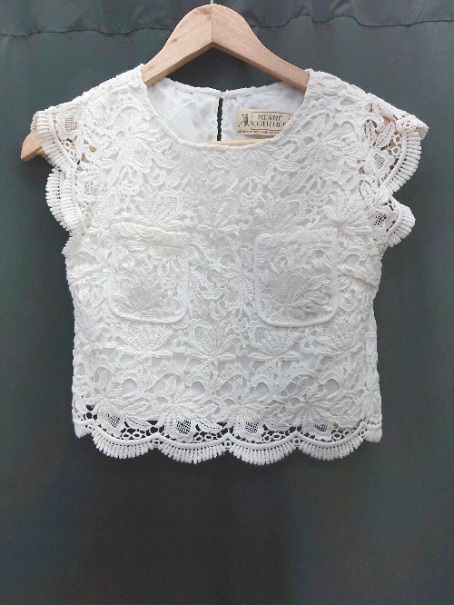 ◇ ME COUTURE ミークチュール 総レース 半袖 ブラウス カットソー アイボリー系 レディース P