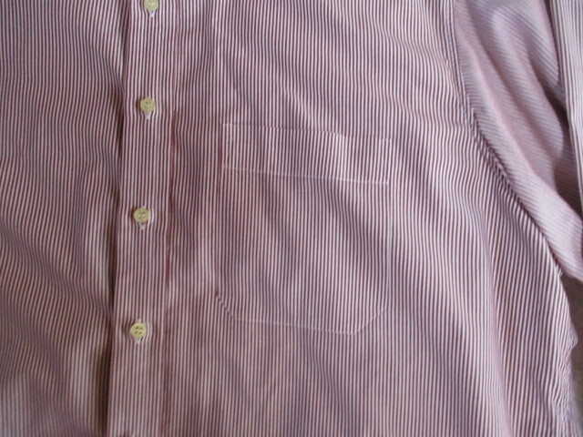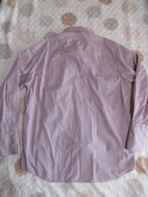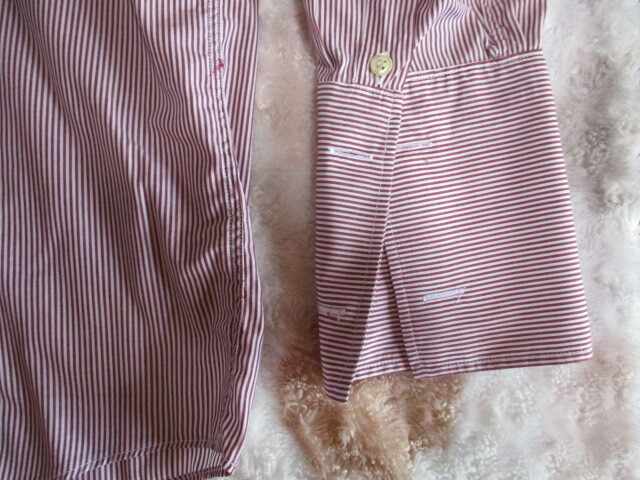 | クリーニング済みで綺麗です。 白地に赤の細いストライプです。 コットン100% イギリス製 サイズ感XL程度と思いますが、実寸計測値を参考にお手元のシャツに合わせて参照ください。 着丈83cm 身幅65cm 肩幅50cm 袖丈67cm 襟回り37cm 背中左右2タック カフス仕様 ノークレームノーリターンにてお願いいたします。 お取引に先立ちましては取引規定欄をお読みください。 取引規定 取引開始より3日経ってご連絡及びご入金ない方は「落札者都合にてキャンセル」とさせていただきます 家庭にあります包装紙や袋を利用し簡易包装に勤めております *送付前と違う状態についてのクレームには対応しかねます。返品もお受けできません。 出荷前画像を保存しています *落札、発送後のご返品は固くお断りしております。返品の送料は落札者支払です。いかなる場合も当方は負担いたしません 画像などでよく吟味され判らない事は質問してください。判る範囲お答え申し上げています。 *万が一返金などが請じりる事案が発生しましても現金にてのご返金は固くお断りしています。 落札後の補修などの費用は落札者様負担です。一切お受けいたしません。 *新品と有りましてもリサイクル品・個人所有品とお考えください。ショップに売っている新品ではありません *ご高齢者のトラブルが激増しています入札は必ずご家族に相談されてからにしてください。 ●新規の方・ご高齢者は失礼ながら基本取引お断りしています ●個人情報の開示もお断りしています。万が一お気に召されない場合はご自身にて再出品ください | |||