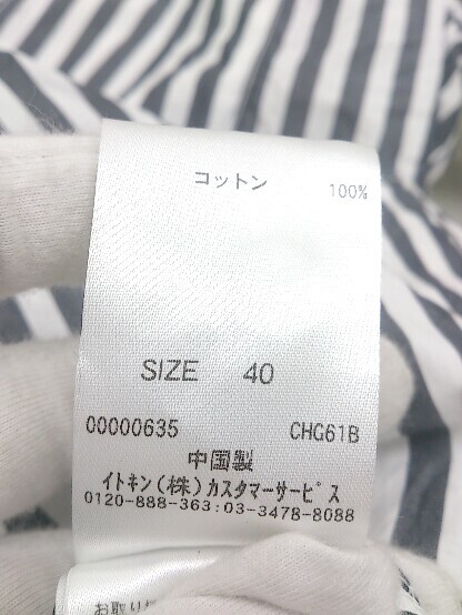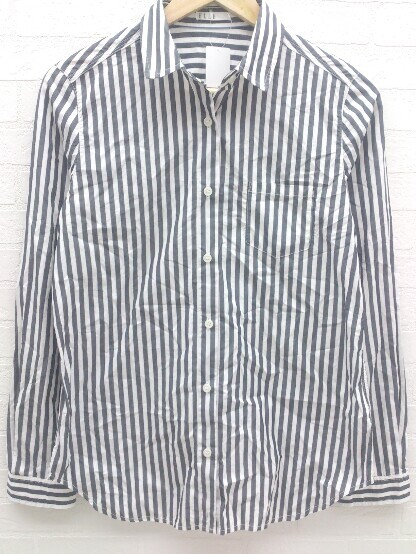 ◇ ◎ ELLE エル ストライプ 長袖 シャツ サイズ40 ホワイト ダークグレー系 レディース
