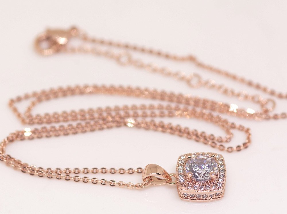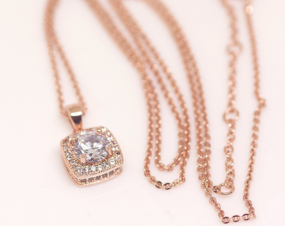| 18K RGP ゴールド 高級 CZ 一粒 上品 ネックレス pn3778 | |