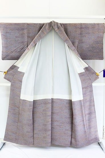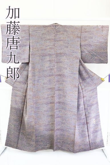 | 【送料無料】付け下げ 加藤唐九郎 陶彩染 灰紫 身丈157.0cm 裄丈66.5cm お洒落 袷 正絹 仕立て上がり m-6275 |