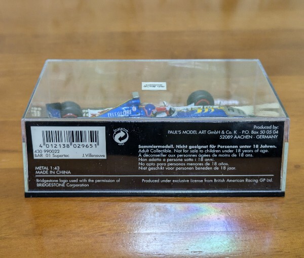 MINICHAMPS 1/43 430 990022 BAR 01 SUPERTEC J.Villeneuve 1999