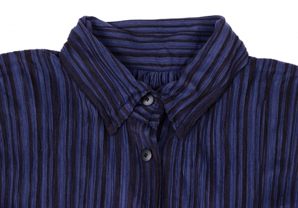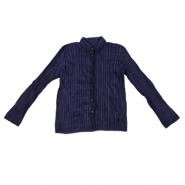 イッセイミヤケISSEY MIYAKE ストライプねじれシャツ 青黒2 |